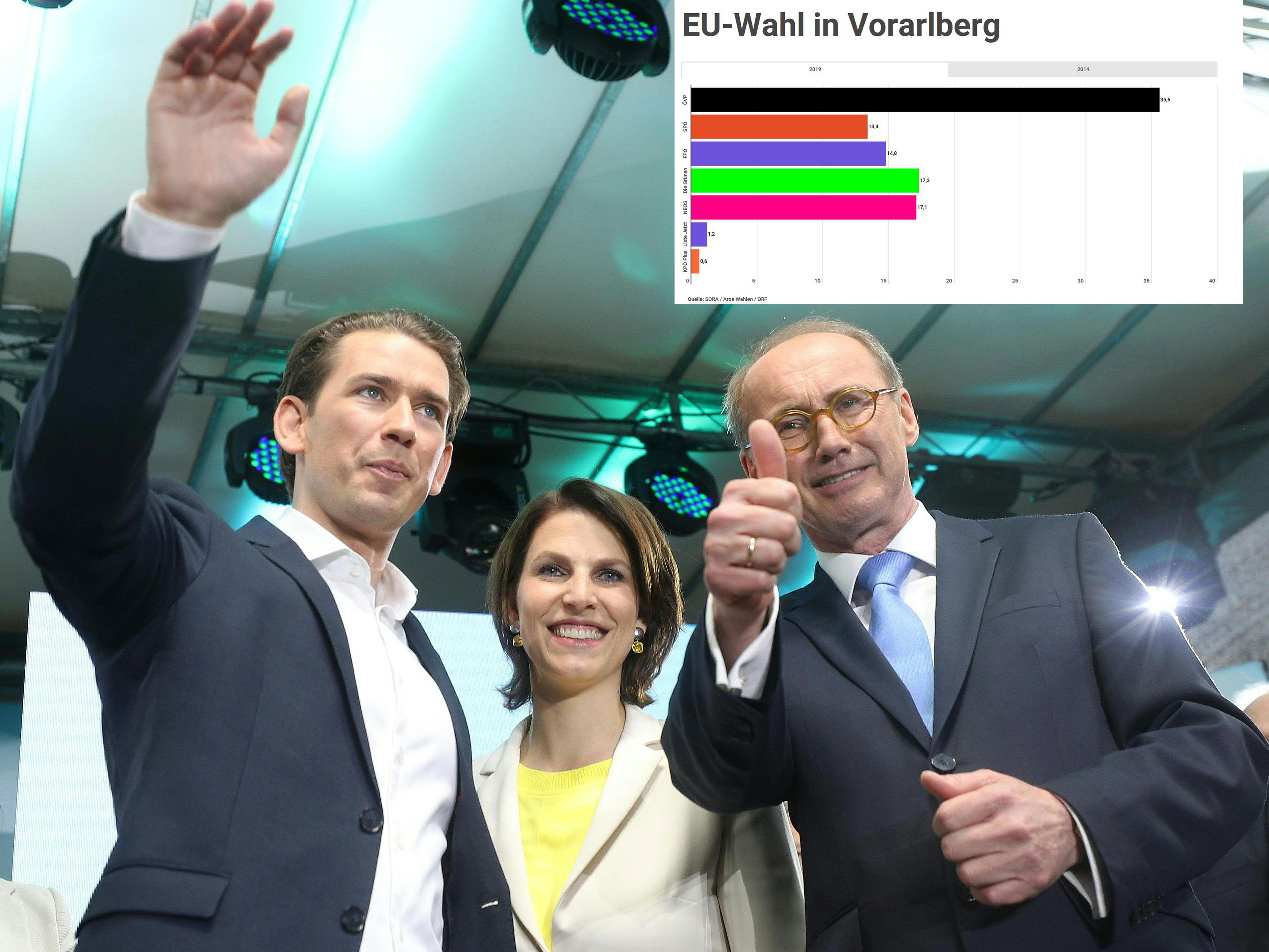 Sie liegt fast 12 Prozentpunkte vor der SPÖ, die auf 23,5 Prozent fiel. Auch die FPÖ verlor und erzielte 17,3 Prozent. Die Grünen feierten mit 13,6 Prozent ein Polit-Comeback und sind ebenso im EU-Parlament wie die NEOS mit 8,4 Prozent.