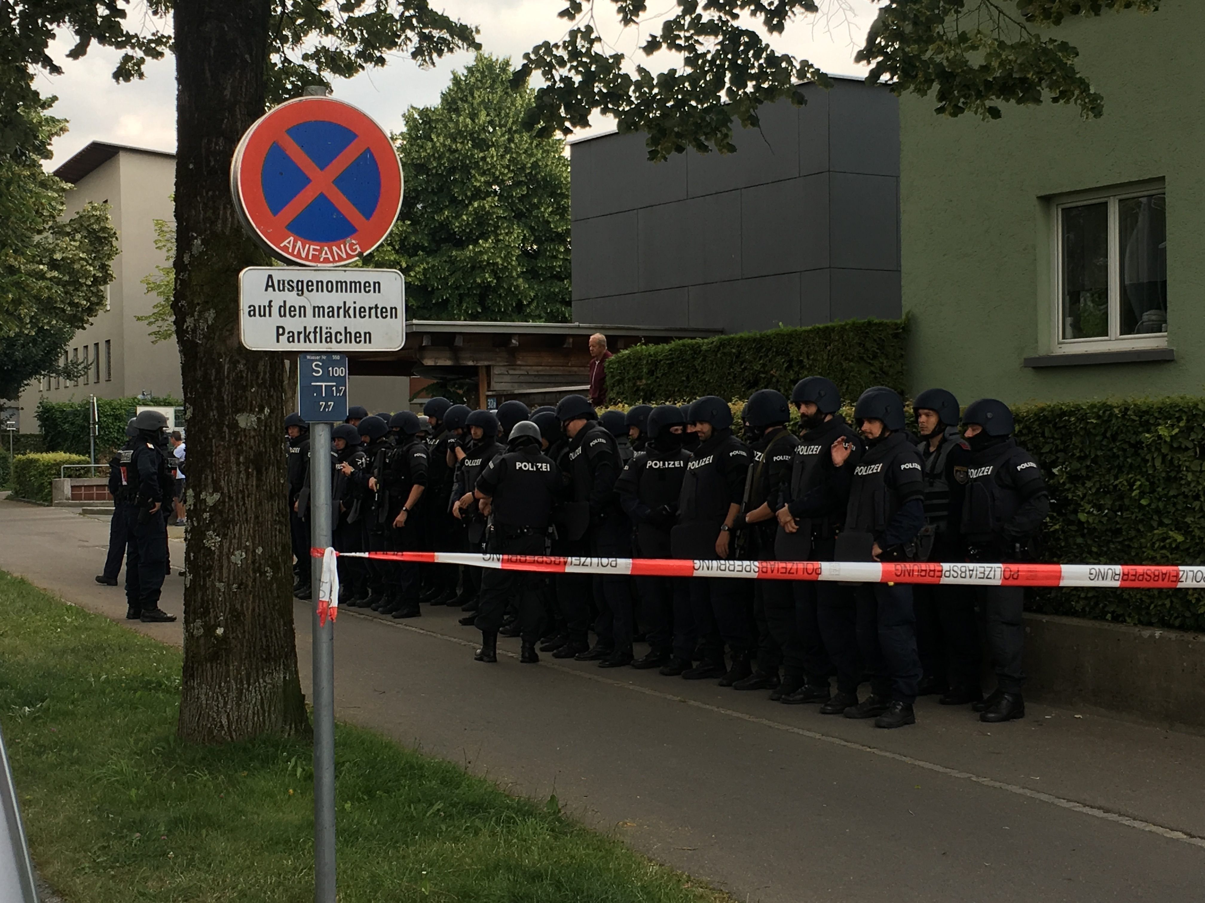 12.04 Uhr: Die Polizei zieht sich aus dem Haus zurück. Kurze Zeit später meldet die Polizei, dass alle anderen Hausbewohner (eine Frau und ein Kind) evakuiert wurden.