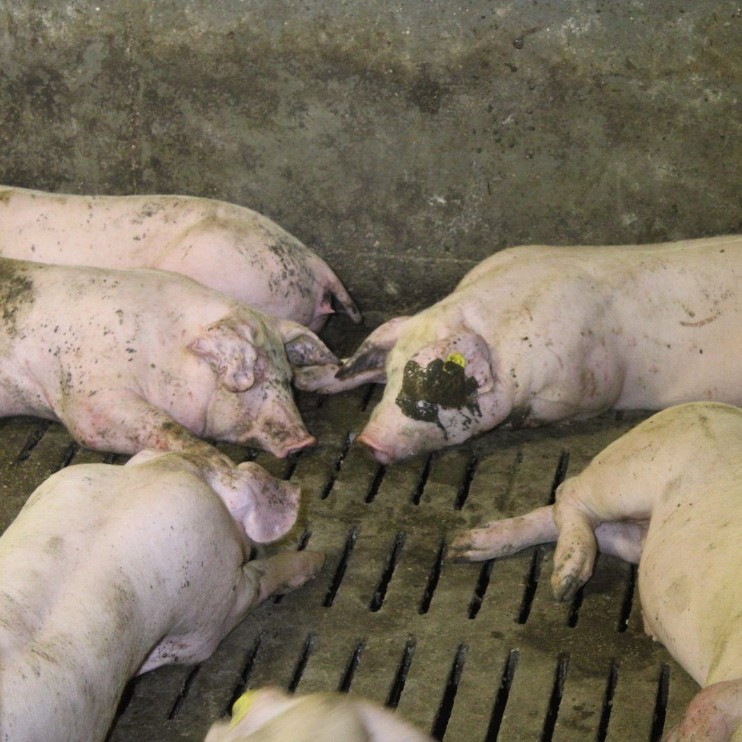 "Da sieht man unzählige verletzte Schweine auf Vollspaltenboden mit strukturlosen Wänden und ohne Stroheinstreu, mit abgebissenen Ohren, abgebissenen Schwänzen, schwer verletzten Gelenken und großen Beulen, und dazu verwesende Schweinekörper. Mitten darin tausende Maden und ein Schweinetotenkopf", beschreibt der VGT in einer Aussendung die schlimmen Zustände in der Schweinefabrik.