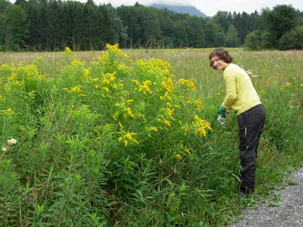 Die Teilnehmerinnen kommen aus ganz Österreich. Sie sind sich einig, dass sie mit den Einsätzen auch für ihre eigene Fitness sorgen. “Mit den ungewohnten Arbeiten werden Muskeln trainiert, die sonst eher ein ruhiges Dasein geniessen,” meint eine Teilnehmerin. Also eine Win-Win-Situation für Mensch und Natur. Der Einsatz in Bangs-Matschels hat ihnen so gut gefallen, dass sie erwägen nächstes Jahr wieder beim Zurückdrängen der Goldrute mitzuhelfen.