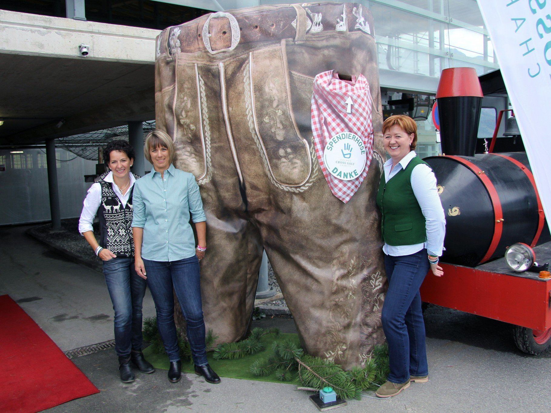 Ein spontaner Einfall sei es gewesen, erzählt Veranstalterin Gertrud Tschohl. Einerseits sagt man bekanntlich umgangssprachlich über großzügige Zeitgenossen, sie hätten “die Spendierhosen an”. Andererseits gehört es für die Männer zum guten Ton, bei der Cross Golf Charity in Lederhosen anzutreten.