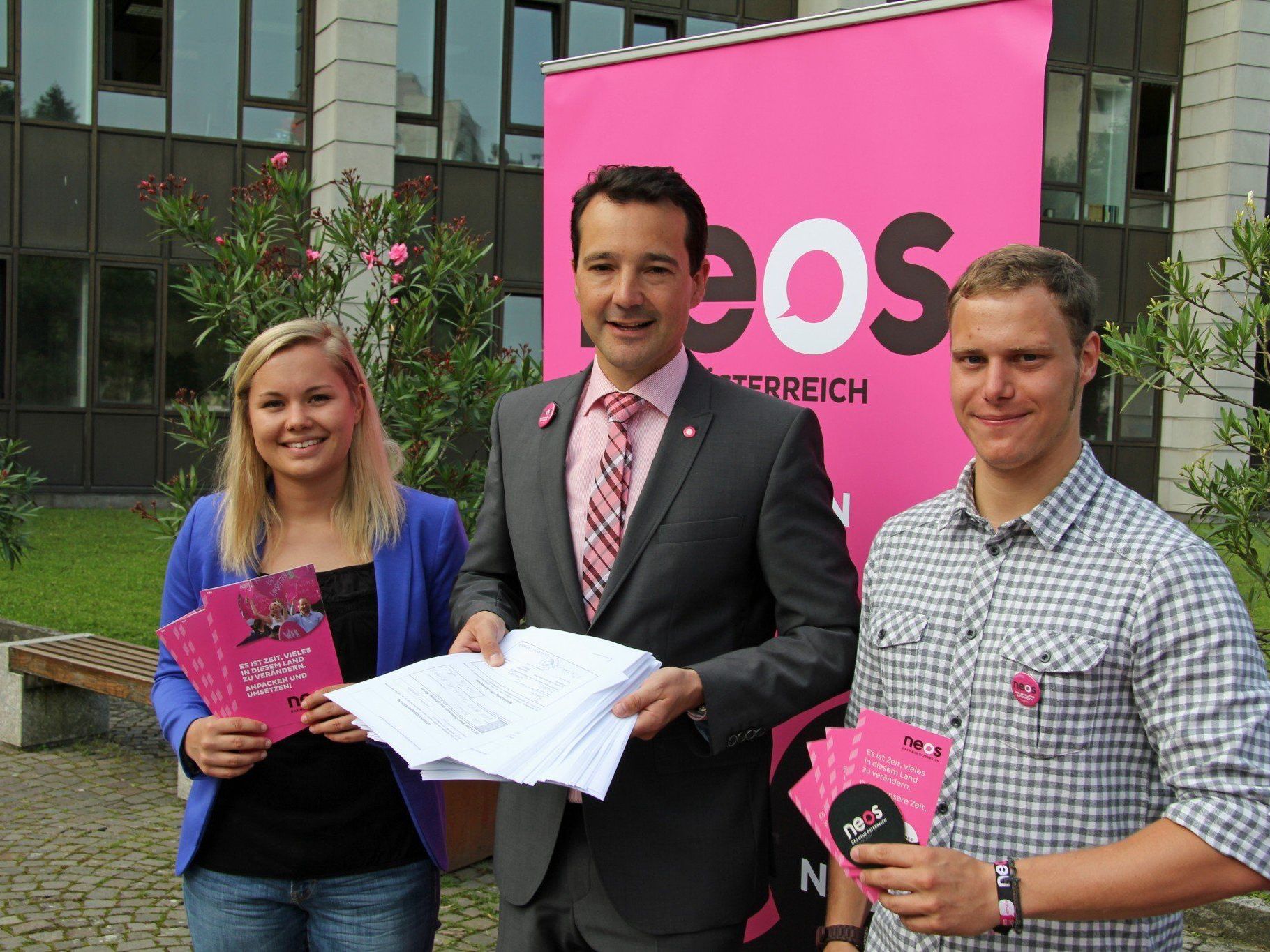 Heute wurden die benötigten Unterstützungserklärungen bei der zuständigen Kommission im Landhaus abgegeben. Über 200 Unterstützungserklärungen sammelte Gerald Loacker für Neos Vorarlberg, genügt hätten 100. Damit ist die Partei fix auf den Vorarlberger Wahllisten für die kommende Nationalratswahl. Vorarlberg ist nach Wien das zweite Bundesland, in denen die notwendigen Unterstützungserklärungen eingereicht wurden.