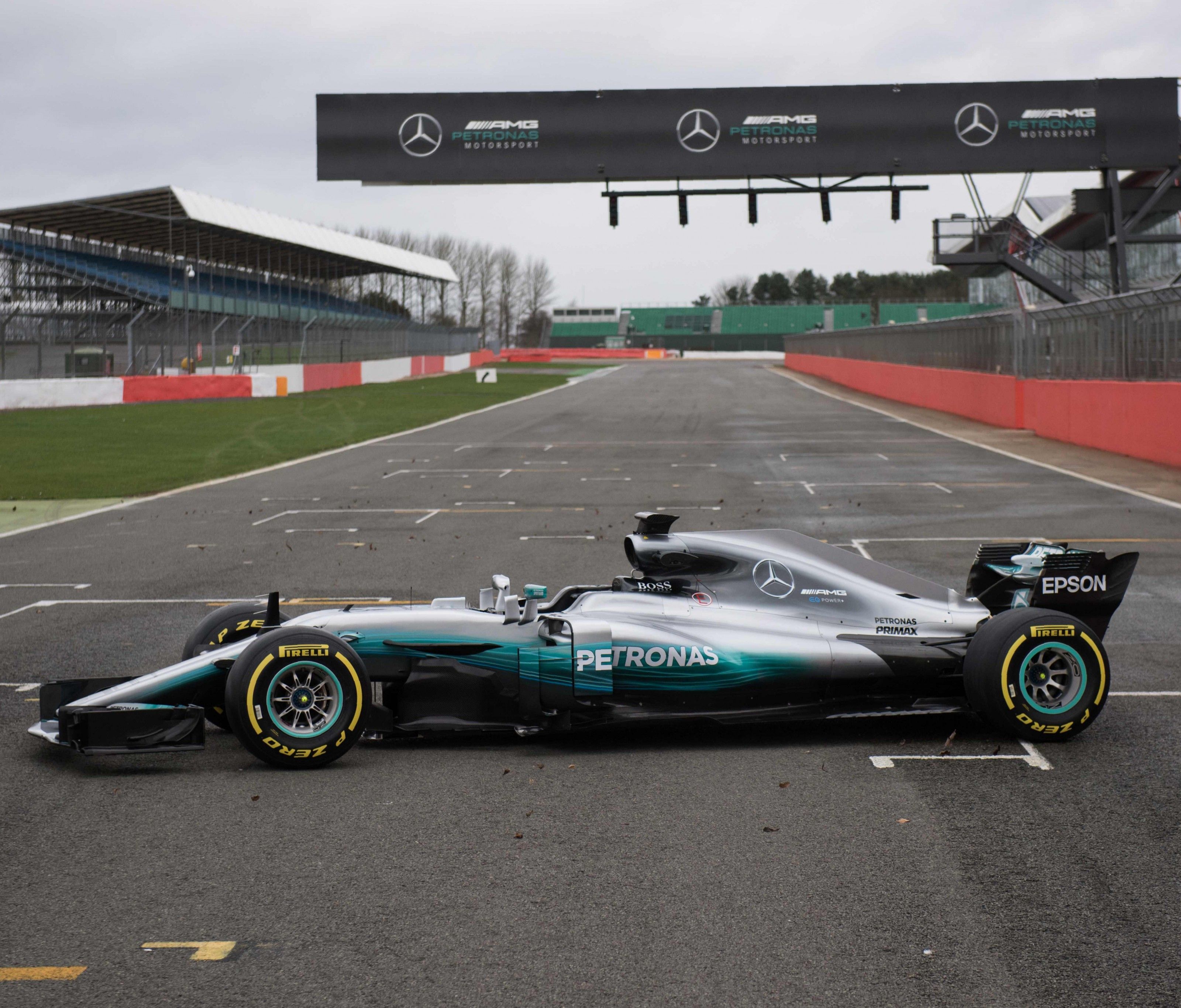 Auffällig an dem Mercedes W08 ist die Tatsache, dass die bei allen anderen Autos der neuen F1-Generation übliche “Haifischflosse” hinter dem Fahrer-Cockpit fehlt. Der Bolide unterscheidet sich auf der Basis des neuen Formel-1-Regelwerks erheblich von seinen Vorgängern, er wirkt zudem aerodynamischer als die bisher vorgestellten Autos der Konkurrenz.