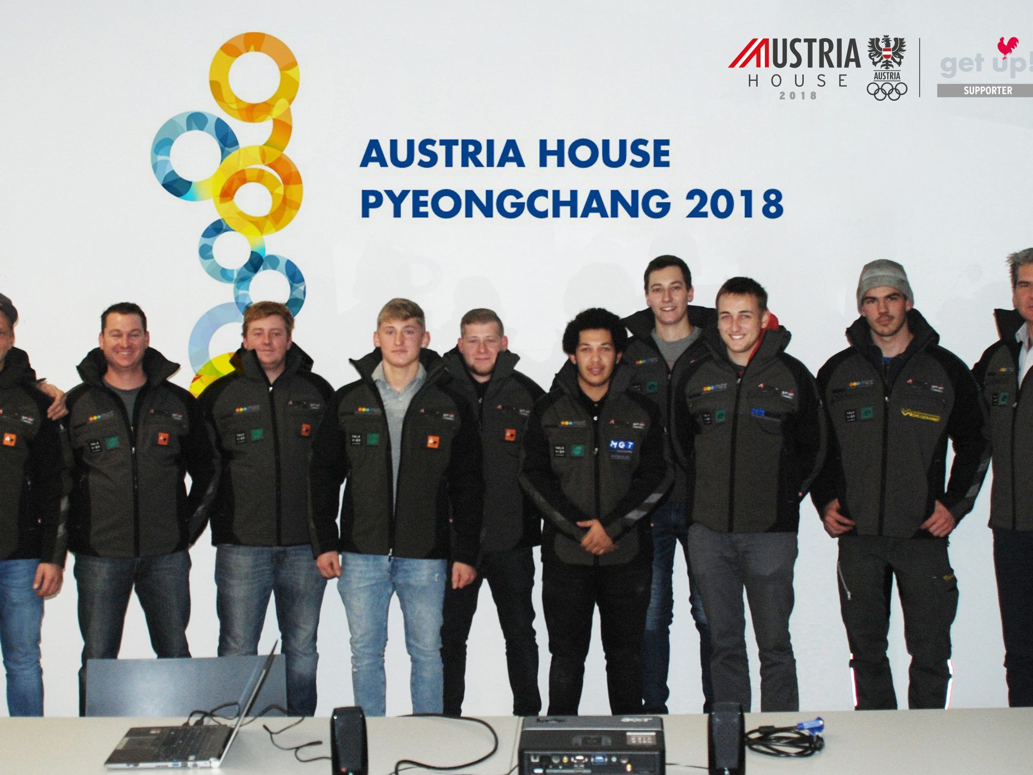 ÖOC-Generalsekretär Peter Mennel und ÖOC-Marketingleiter Florian Gosch waren von Anfang an begeistert von der Lehrlings-Idee: “Das Austria House hat Tradition als ein Stück Heimat bei Olympischen Spielen. Dass österreichische Lehrlinge erstmals auch beim Aufbau dieses besonderen Gebäudes mitwirken, ist einerseits eine riesen Erfahrung für die jungen Menschen und passt andererseits genau zur Philosophie des Hauses.”