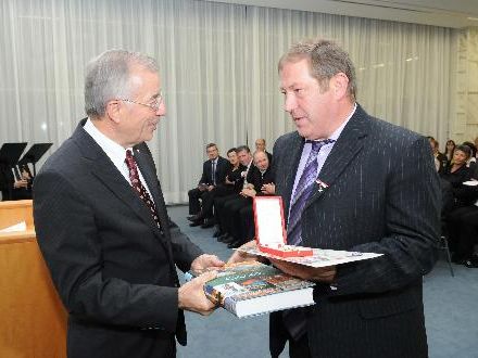 Am Nationalfeiertag erhielt Helmut Leite, der seit dem 10. Jänner 1979 Gemeindeoberhaupt von Schwarzach ist, aus den Händen von Landeshauptmann Dr. Herbert Sausgruber das Goldene Verdienstzeichen der Republik Österreich.