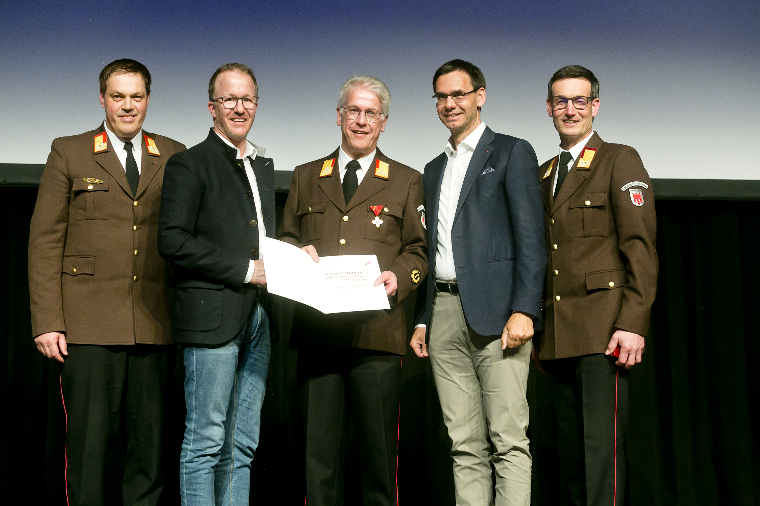 Christoph Feuerstein, der rund 15 Jahre das Amt des Bezirksfeuerwehrinspektors im Bezirk Bludenz wahrgenommen hat, wurde mit dem Verdienstkreuz des Landesfeuerwehrverbandes in Gold ausgezeichnet. Der Landesfeuerwehrinspektor würdigte in seiner Laudatio die Verdienste von Christoph Feuerstein und wünscht ihm für die Zukunft alles Gute.