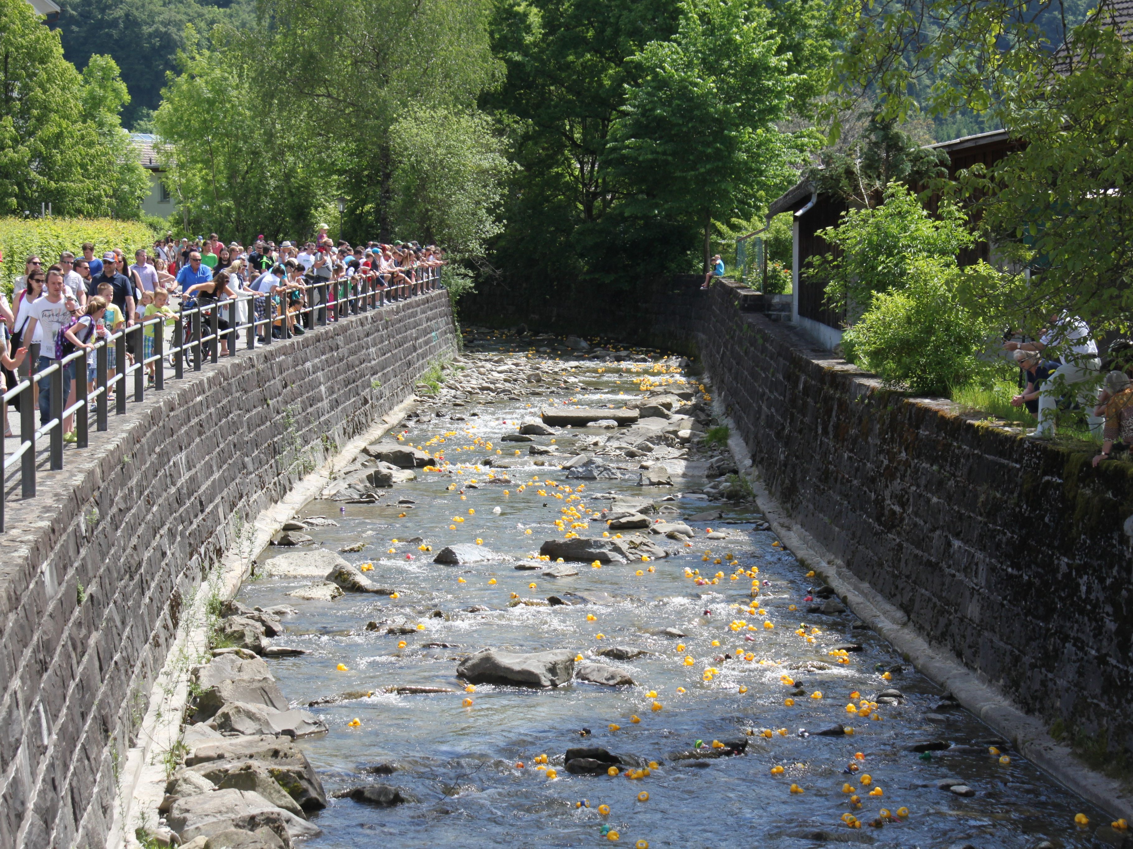 Aber auch beim Start können am Samstag ab 13.00 Uhr Kurzentschlossene noch zu ihren Enten kommen, bevor sic h die gelben Renner um 14.00 Uhr in die Fluten stürzen. Nach dem Rennen geht’s weiter zur Schlussveranstaltung beim Feuerwehrhaus Schwarzach. Hier findet nicht nur die Preisverteilung für die schnellsten Enten statt, auch die schönsten Enten werden prämiert, ein Kinderprogramm mit Hüpfburg und Kinderschminken ist ebenso Teil der Veranstaltung wie entsprechende Verpflegung.