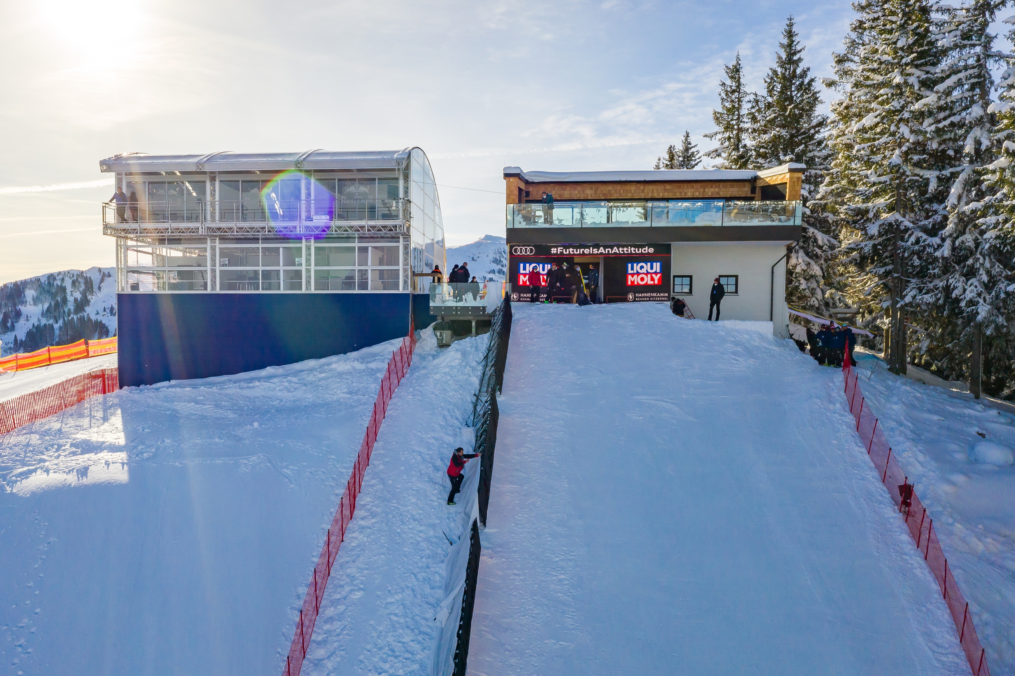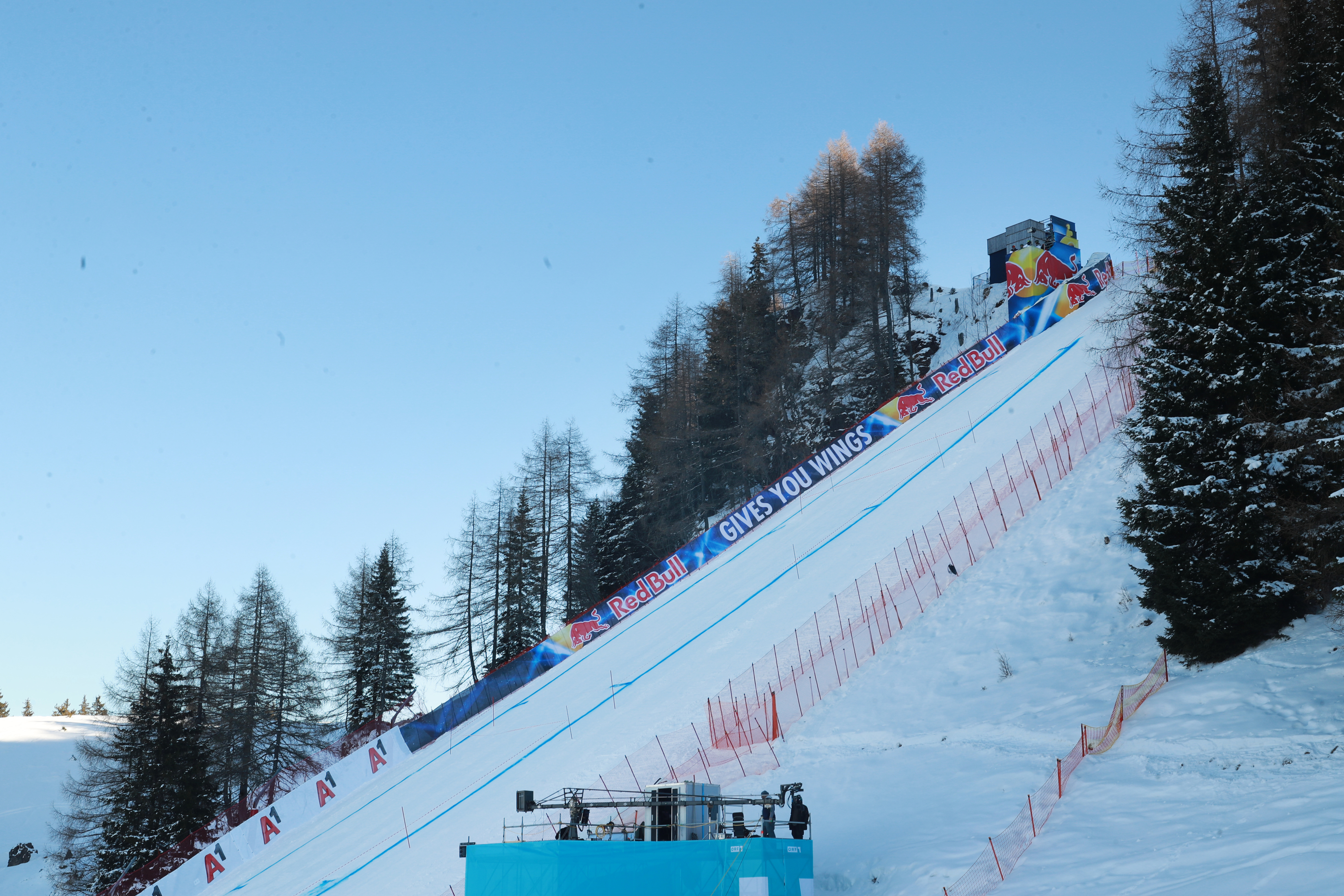 Das Gefälle am Startschuss beträgt 50 Prozent oder 26,6 Grad. Damit hat die Streif nach der Pista Stelvio den steilsten Startschuss im Skiweltcup. In Bormio müssen die Athleten bei einem Gefälle von 63 Prozent aus dem Starthaus.