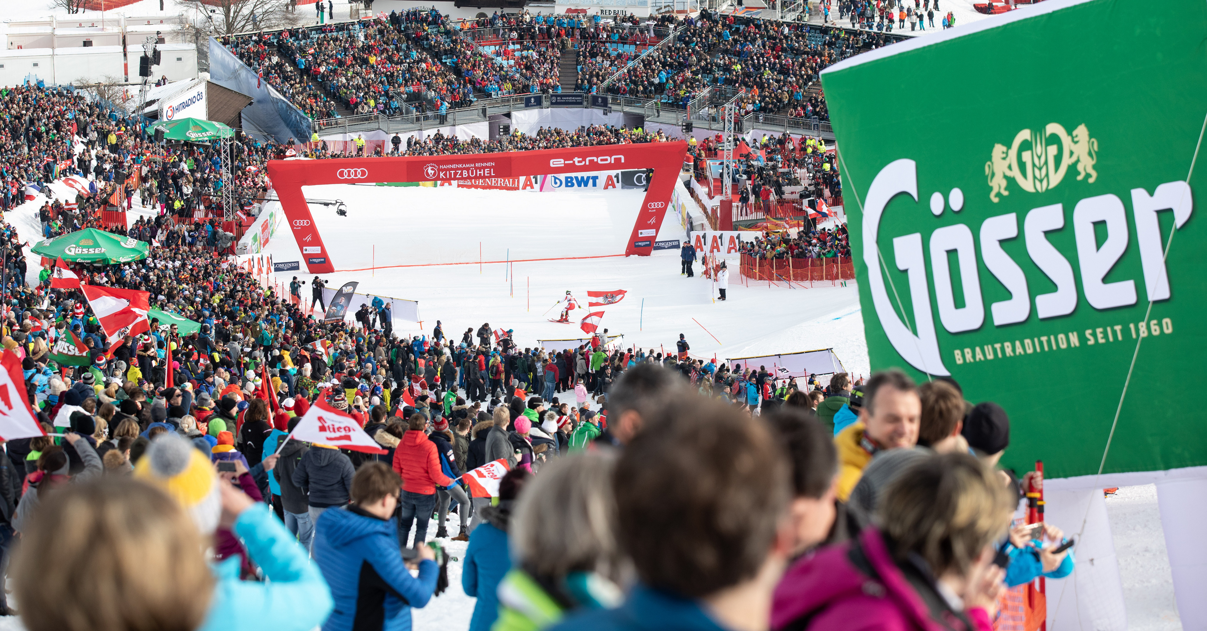 Über das ganze Rennwochenende pilgern rund 100.000 Fans nach Kitzbühel. Der Großteil (45.000) kommen zur Abfahrt, 15.000 zum Super-G und 25.000 zum Slalom.