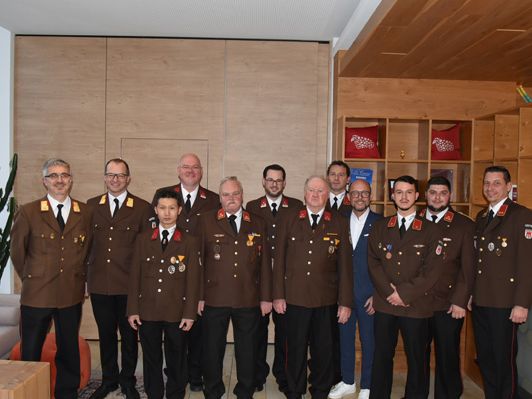 Auch einer der Tagesordnungspunkte waren die Ehrungen langjähriger aktiver Dienste. Andreas Kirchmann und Thanh Dong (25 Jahre), Gerald Nicolussi (40 Jahre), Norbert Masnetz (50 Jahre), Gerhard Stecher (60 Jahre).