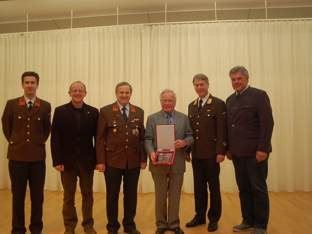 Als Höhepunkt des Abends konnte BFI Christoph Feuerstein dem langjährigem Feuerwehrfreund und Nachbar der OF Bings-Stallehr Herrn Emil Muther die Florianiplakette in Bronze überreichen.