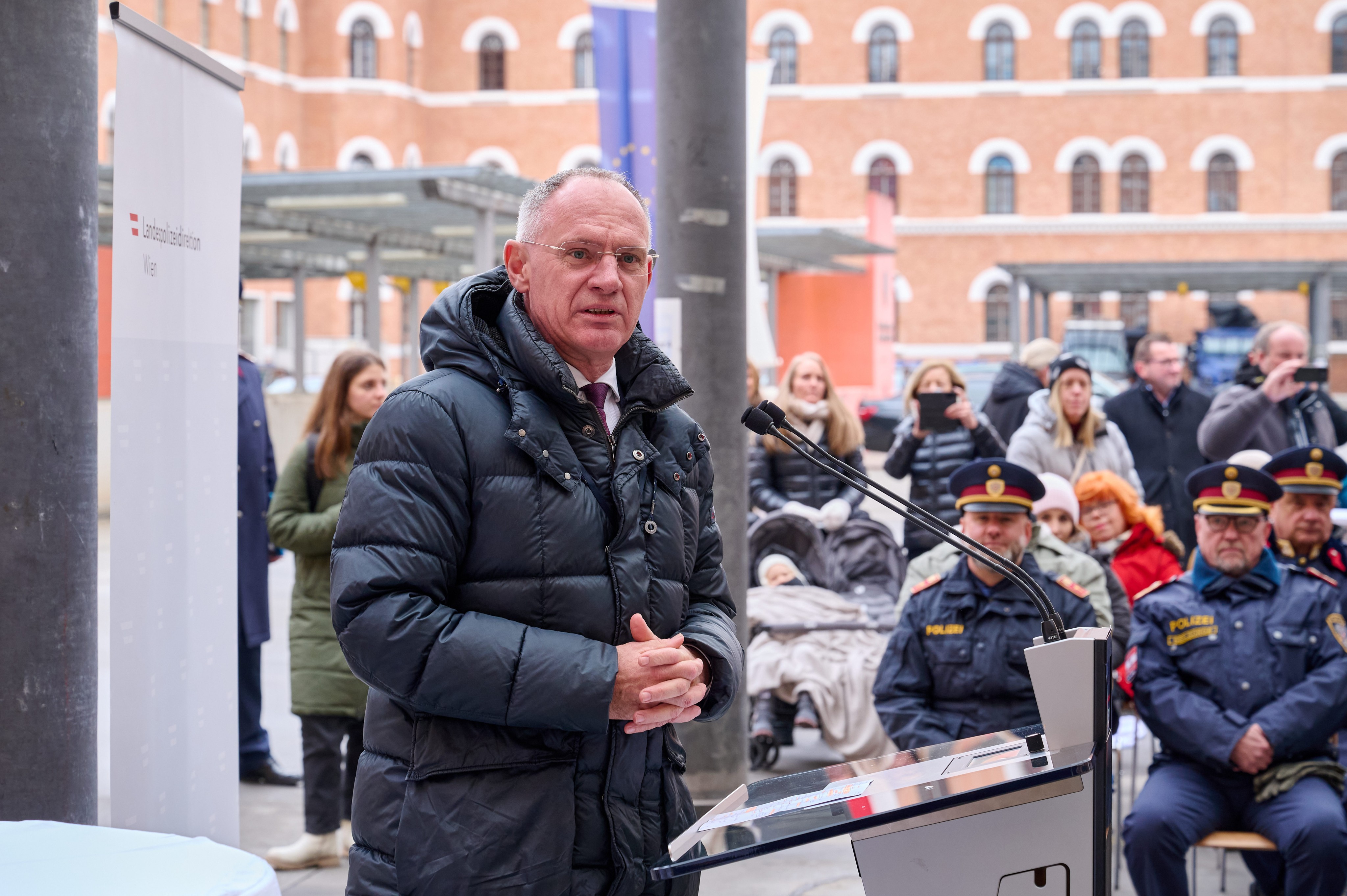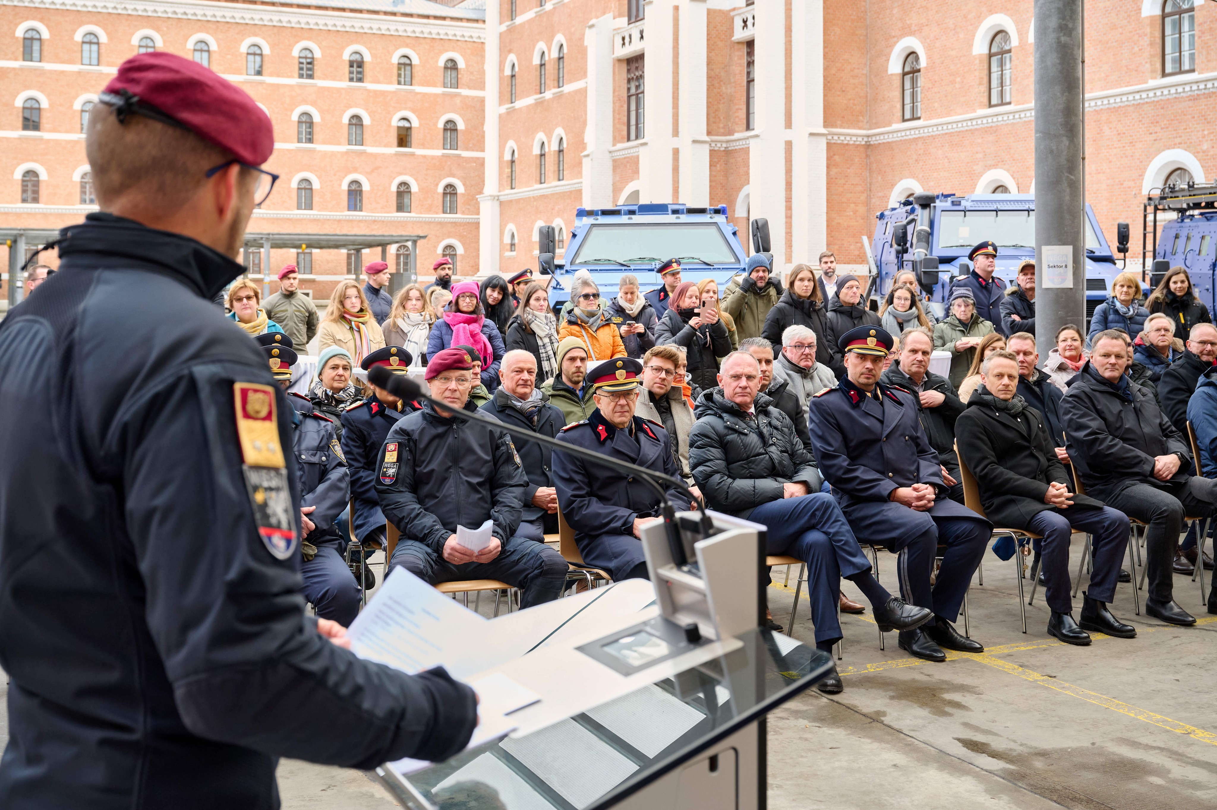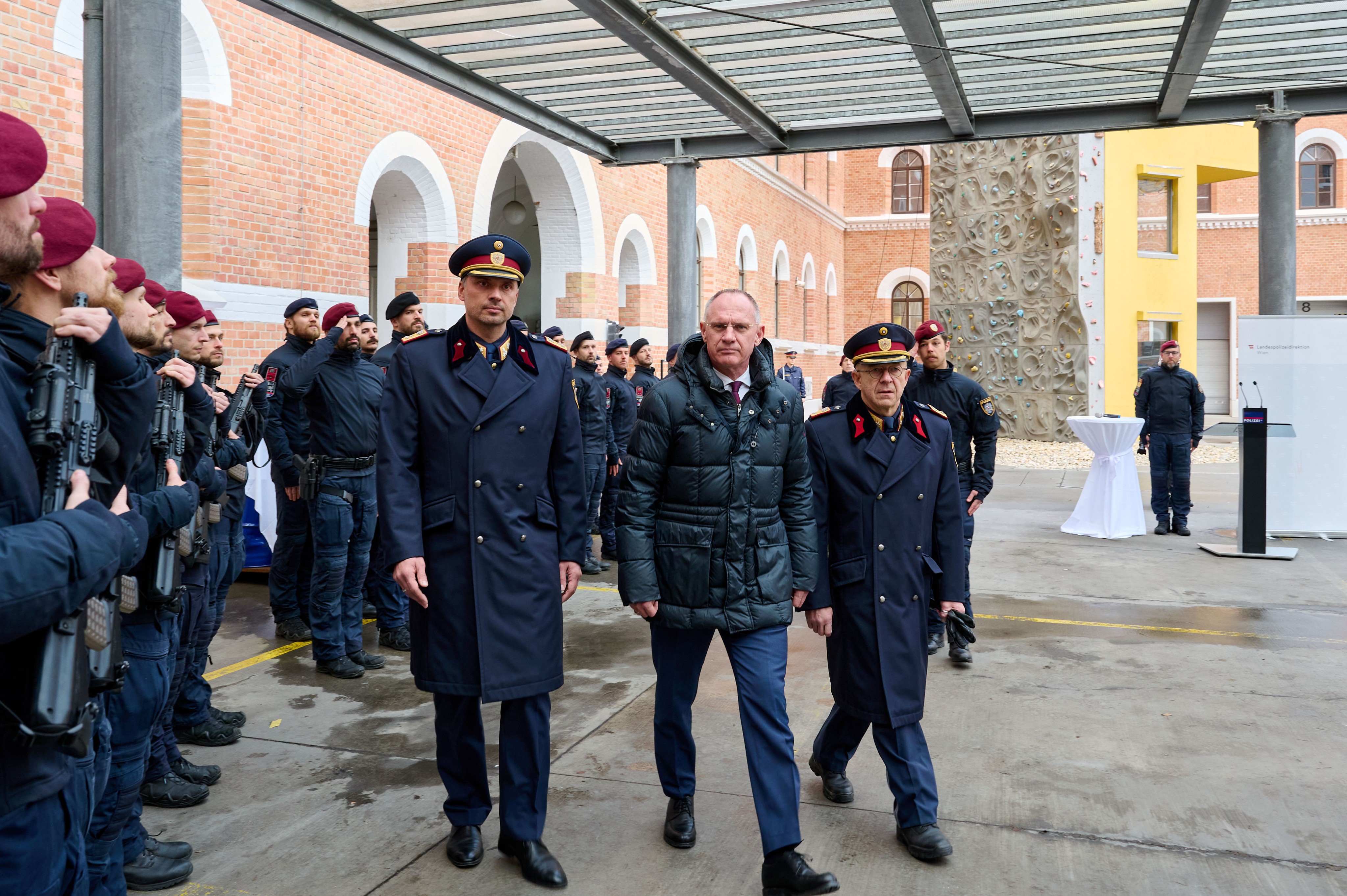 "Die WEGA ist in Wien rund um die Uhr im Streifendienst unterwegs und in wenigen Minuten bei gefährlichen Einsätzen vor Ort. Dieses bewährte Erfolgsmodell wurde mit der Einführung der Schnellen Interventionsgruppen auch in allen anderen Bundesländern übernommen. Ziel dieser Maßnahmen ist die größtmögliche Sicherheit für unsere Bevölkerung", so Innenminister Gerhard Karner bei der WEGA-Ausmusterung.