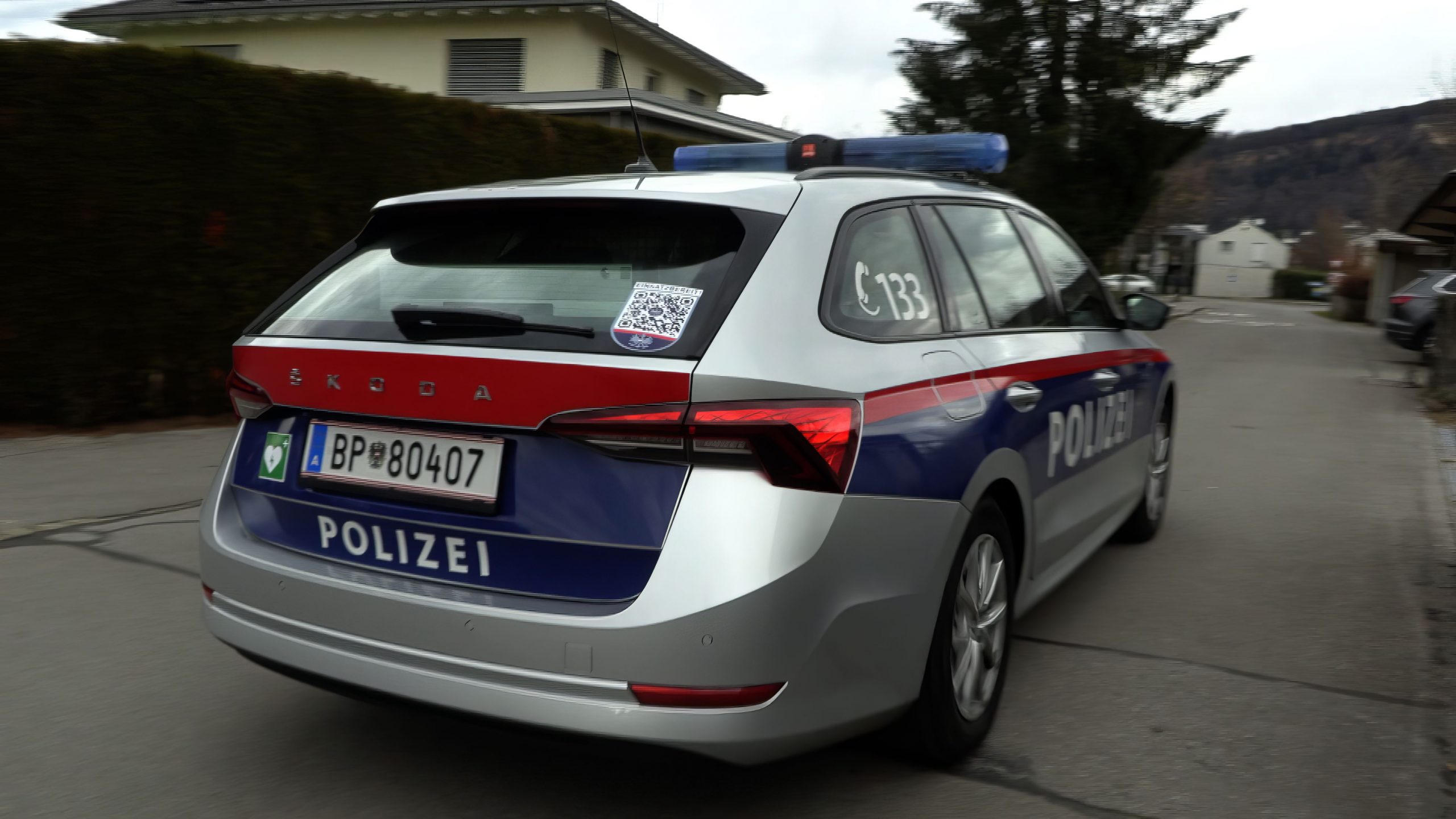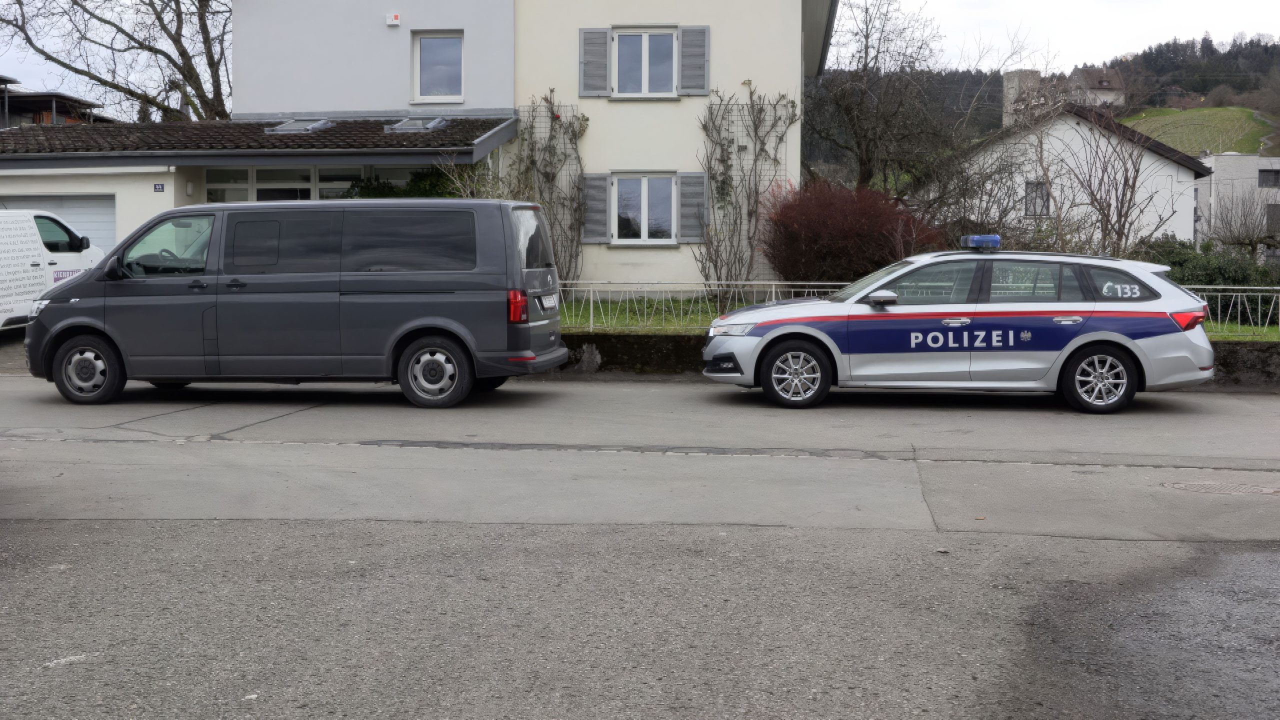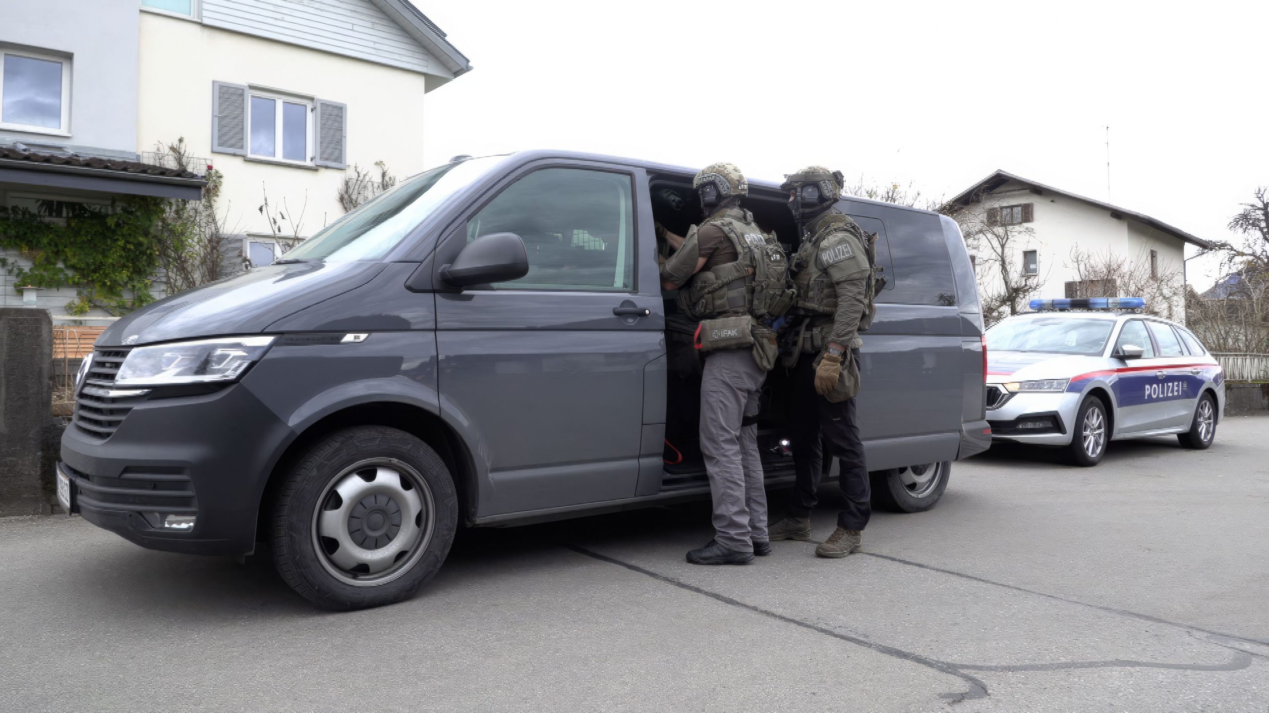 Bilder und Video von der Festnahme eines 18-Jährigen in Wolfurt, nachdem er online eine Bombendrohung ausgesprochen hatte.