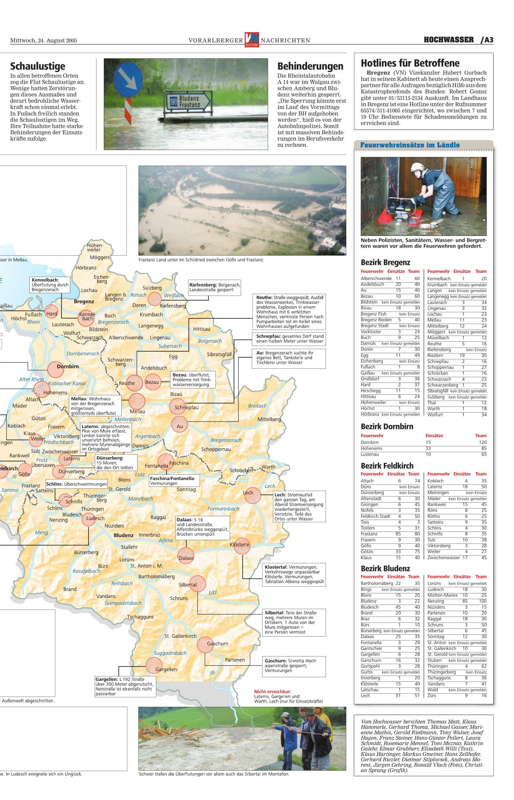 - Besonders betroffen waren Lech, Au, Mellau, Bezau, Reuthe, St. Gallenkirch, Silbertal, Nenzing, Frastanz und Göfis.