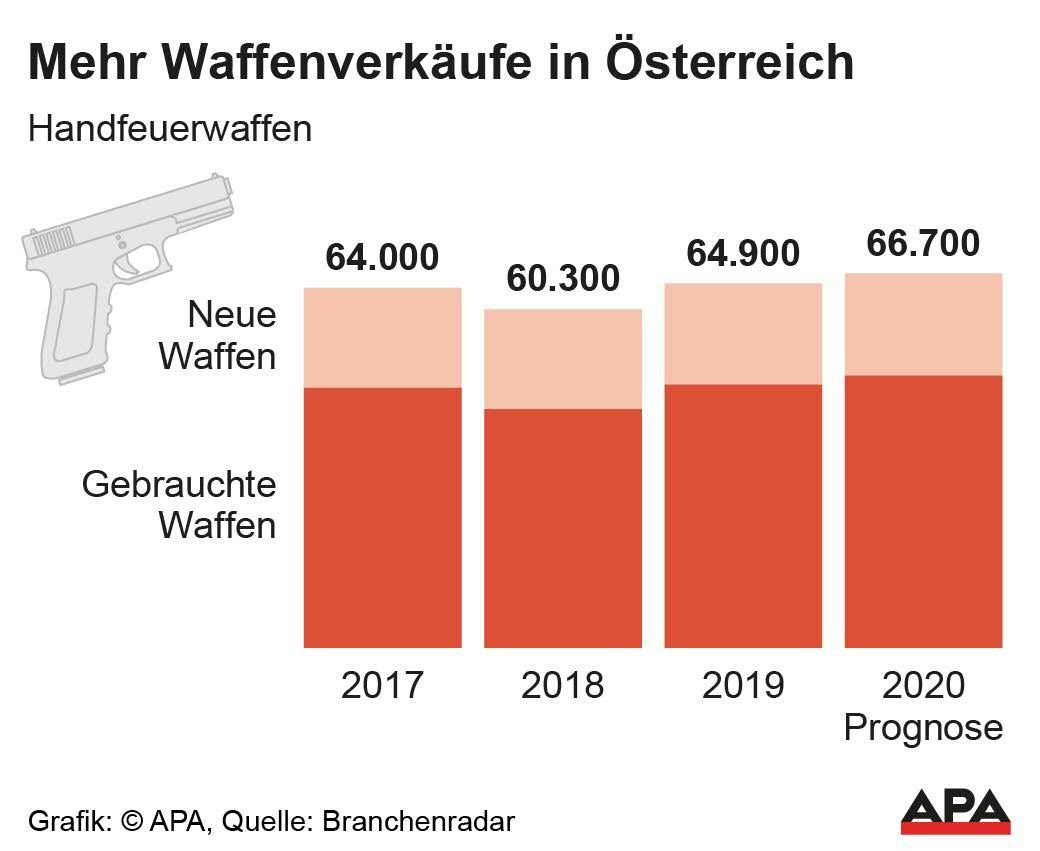 Laut zentralem Waffenregister waren in Österreich mit Ende 2019 rund 1,08 Millionen Waffen der Kategorien B, C und D in privatem Besitz, hieß es in der Branchenradar-Marktanalyse. Im Vergleich zu 2018 stieg der Bestand um rund 56.000 Stück. Rund 47.000 Waffen wurden abgemeldet, damit lag die Anzahl der Neuanmeldungen bei knapp 103.000 Stück. Die Differenz zwischen Waffenverkäufen (64.870 Stück) und Neuanmeldungen (103.000 Stück) erklärt sich aus dem "Below-the-line Geschäft", also Verkäufen oder Besitzerwechseln, bei denen kein Händler involviert ist.