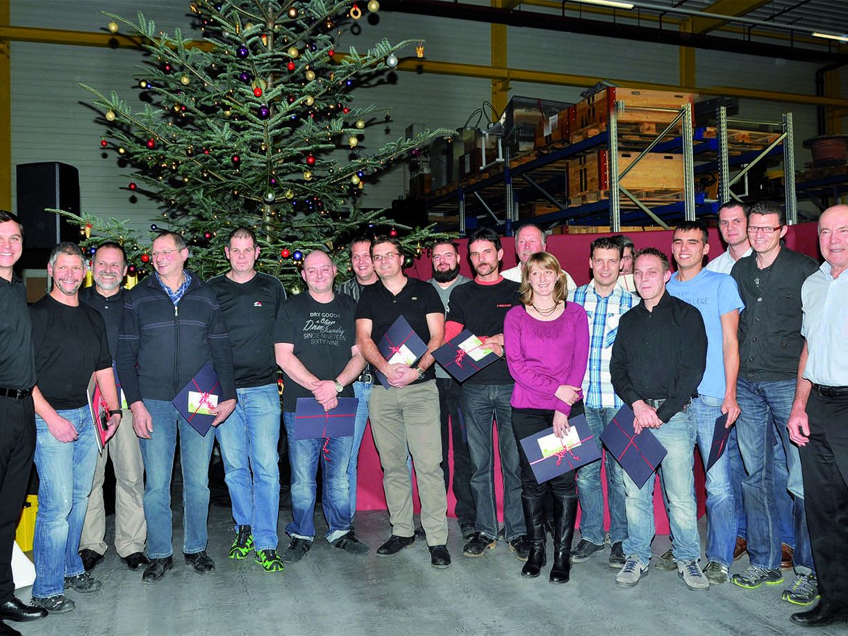 Kürzlich ehrte die Geschäftsleitung der Firma Meusburger Formaufbauten langjährige Mitarbeiter/innen für die außergewöhnlichen Leistungen und ihren Einsatz. Insgesamt zeichnete Meusburger 20 Personen aus, die insgesamt 275 Jahre bei Meusburger tätig sind. Der Dank galt Reinhard Mäser für 40 Jahre, Peter Dorner, Gerhard Lenz und Hubert Weber mit 25 Jahren sowie Rene Dobler, Frank Steurer, Gertrude Krenn, Hermann Muxel, Mathias Salzger, Markus Beer, Andreas Muxel, Thomas Heidegger, Roman Giesinger, Daniel Fink, Otmar Meusburger, Gerlinde Jenny, Franz Feuerstein, Klaus Nußbaumer, Bojan Rojs mit jeweils 10 Jahren Loyalität und Betriebszugehörigkeit. Außerdem bedankten sich Firmengründer Georg Meusburger und Geschäftsführer Guntram Meusburger bei Walter Metzler für seine zehnjährige Betriebstreue und verabschiedeten ihn in den Ruhestand.