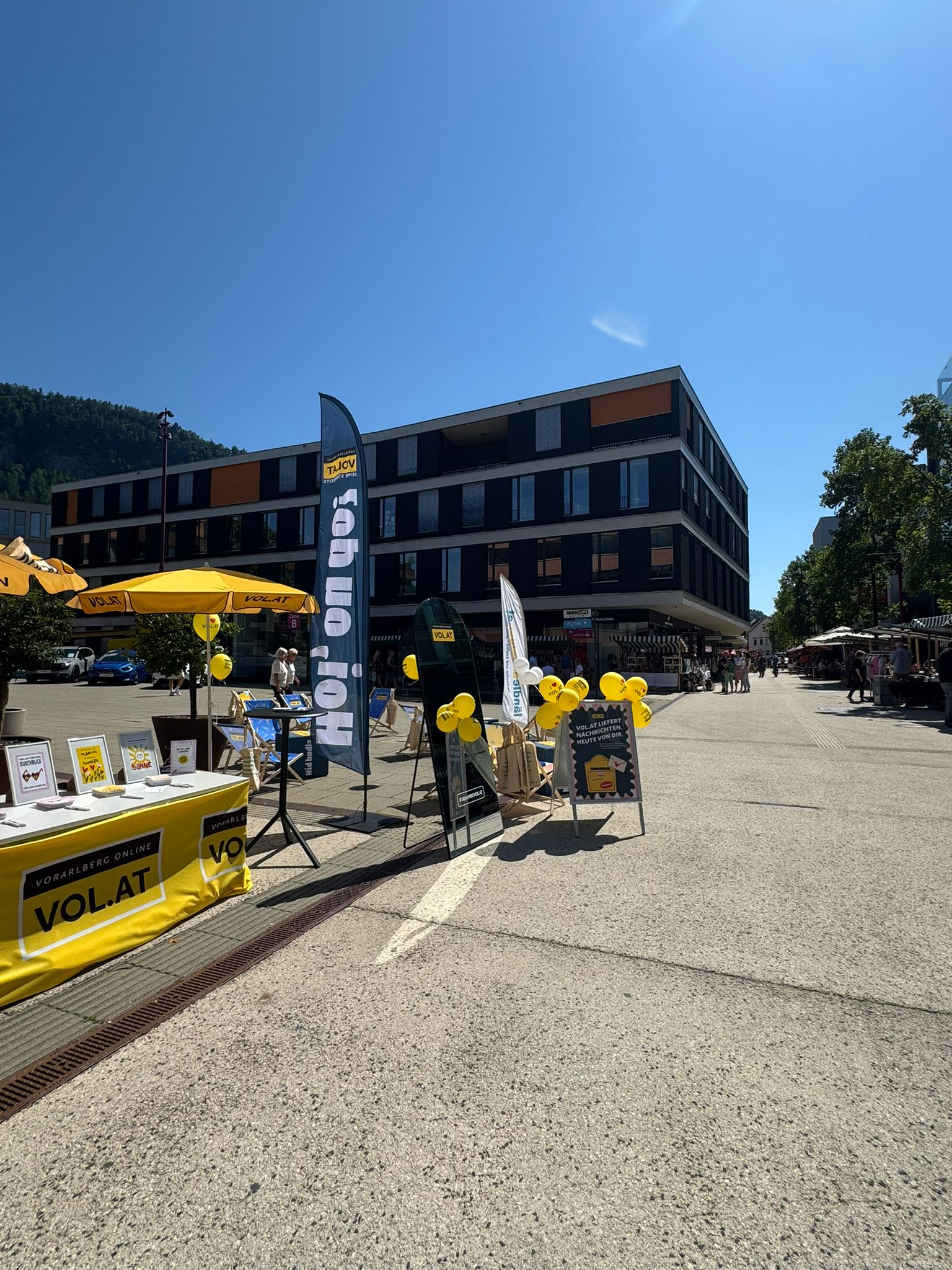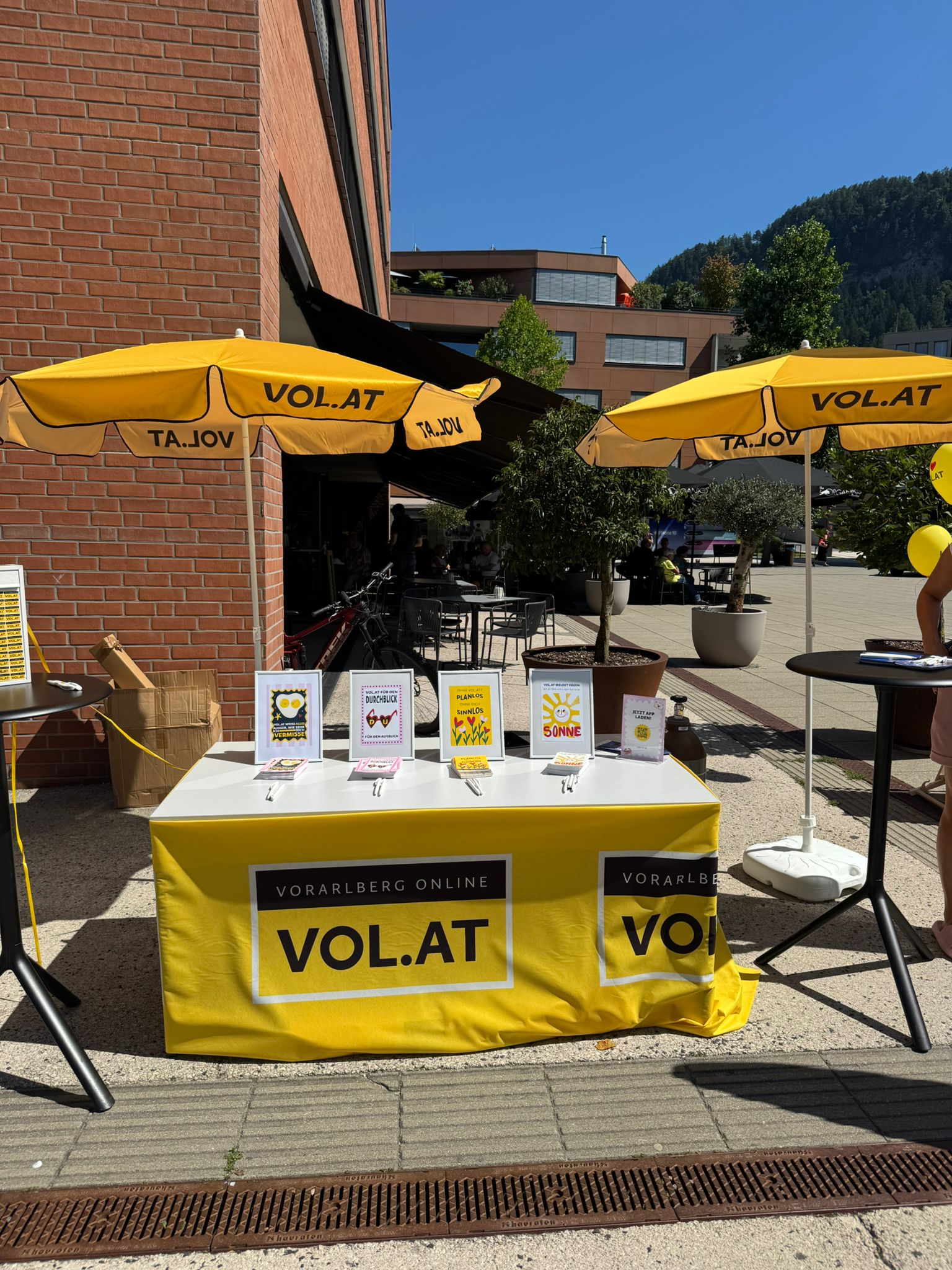 Mitten in der Feierlaune: der VOL.AT-Stand, an dem du nicht nur Teil unseres runden Geburtstags wirst, sondern auch die Chance auf einen sensationellen Gewinn von Nachbaur Reisen hast!