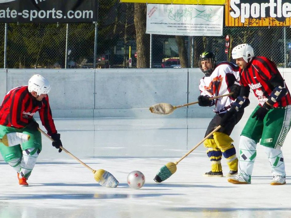 In diesem verrückten Spiel stehen sich zwei Mannschaften auf dem Eis, „bewaffnet“ mit einem Besen, mit Turnschuhen und kompletter Eishockeyausrüstung adjustiert, gegenüber und versuchen einen Plastikfussball mit dem Besen in ein Nachwuchsfussballtor zu schießen. Durch die Kombination Eis, Turnschuhe, Besen und leichter Plastikball sind spektakuläre und für den Zuschauer äusserst lustige Spiele vorprogrammiert.