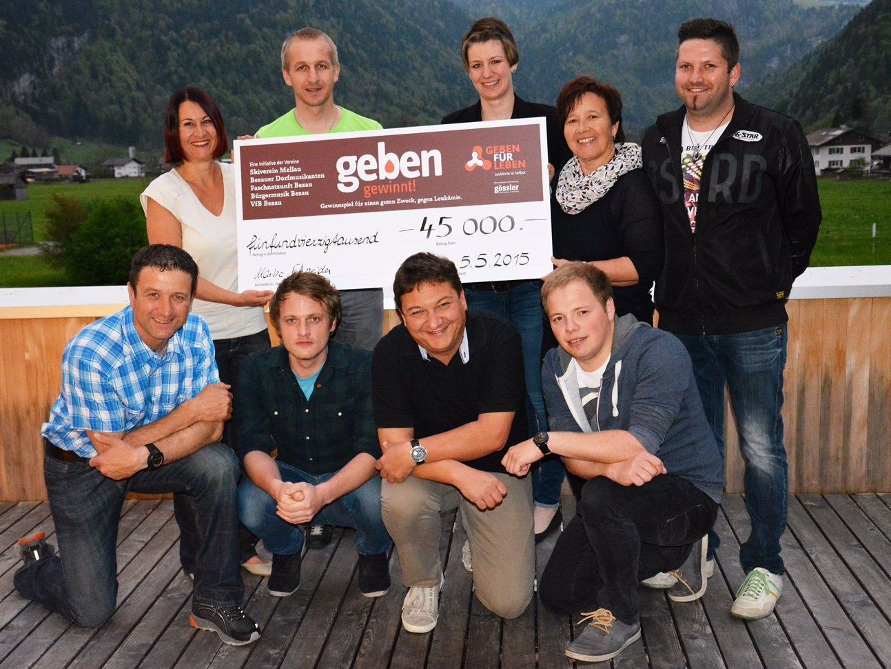 Fünf Vereine haben sich dem Verlust eines leukämiekranken Freundes zusammengeschlossen, mit dem Ziel möglichst viel Geld für “Geben für Leben” zu sammeln. Mit dabei waren die Bezauer Dorfmusikanten, die Faschnatzunft Bezau, der VfB Bezau, die Bürgermusik Bezau und der Skiverein Mellau.