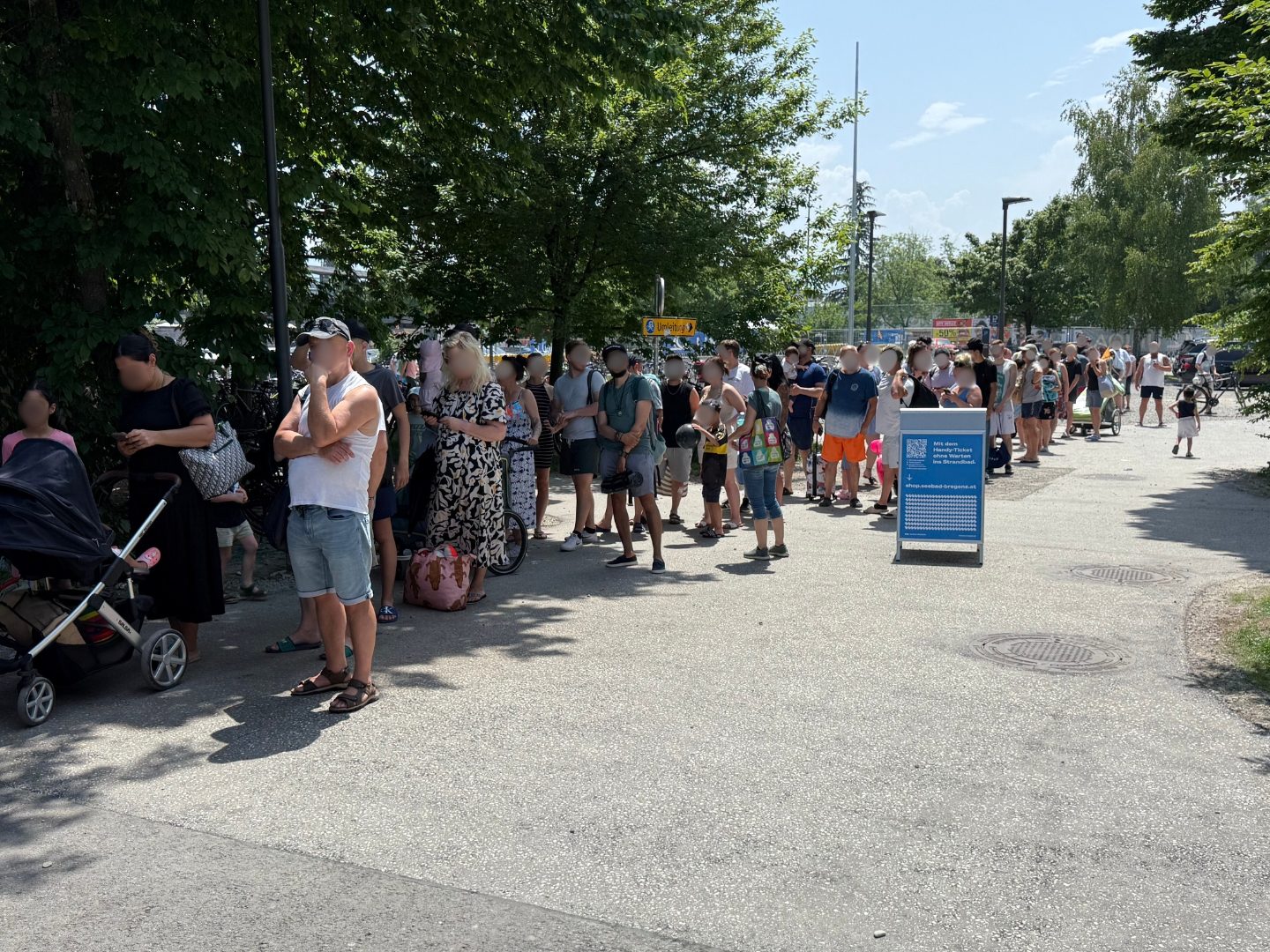 Dass das Hinweisschild auf die Online-Tickets nicht von allen gesehen wurde, sei bedauerlich, aber erklärbar: "Wir haben es anfangs aufgestellt, als die Schlange noch nicht so lang war." Mit einem derartigen Besucherandrang habe das Strandbad nicht gerechnet.