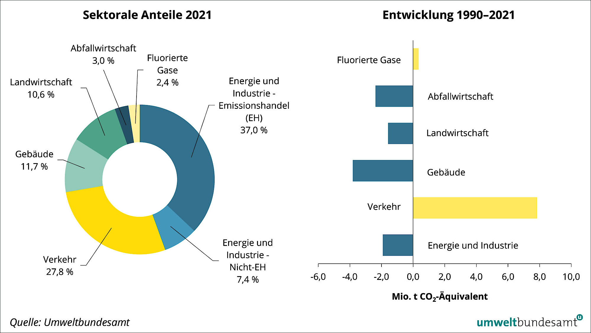 Im Verkehrsbereich sind die Emissionen gegenüber 2020 durch den höheren Kraftstoffabsatz um 4,2 Prozent bzw. 0,9 Millionen Tonnen gestiegen. Gleichzeitig sei, wie im NowCast von August 2022 prognostiziert, beim Verkehr eine deutliche positive Änderung gegenüber der Zeit vor der Pandemie erkennbar. Denn laut Umweltbundesamt sind die Emissionen 2021 gegenüber 2019 um zehn Prozent bzw. um 2,4 Millionen Tonnen CO2-Äquivalent zurückgegangen. Man sei beim "Sorgenkind Verkehr" auf dem richtigen Weg, aber noch nicht am Ziel, sagte Gewessler. "Der aktuelle Trend muss deutlich stärker weiter nach unten gehen."