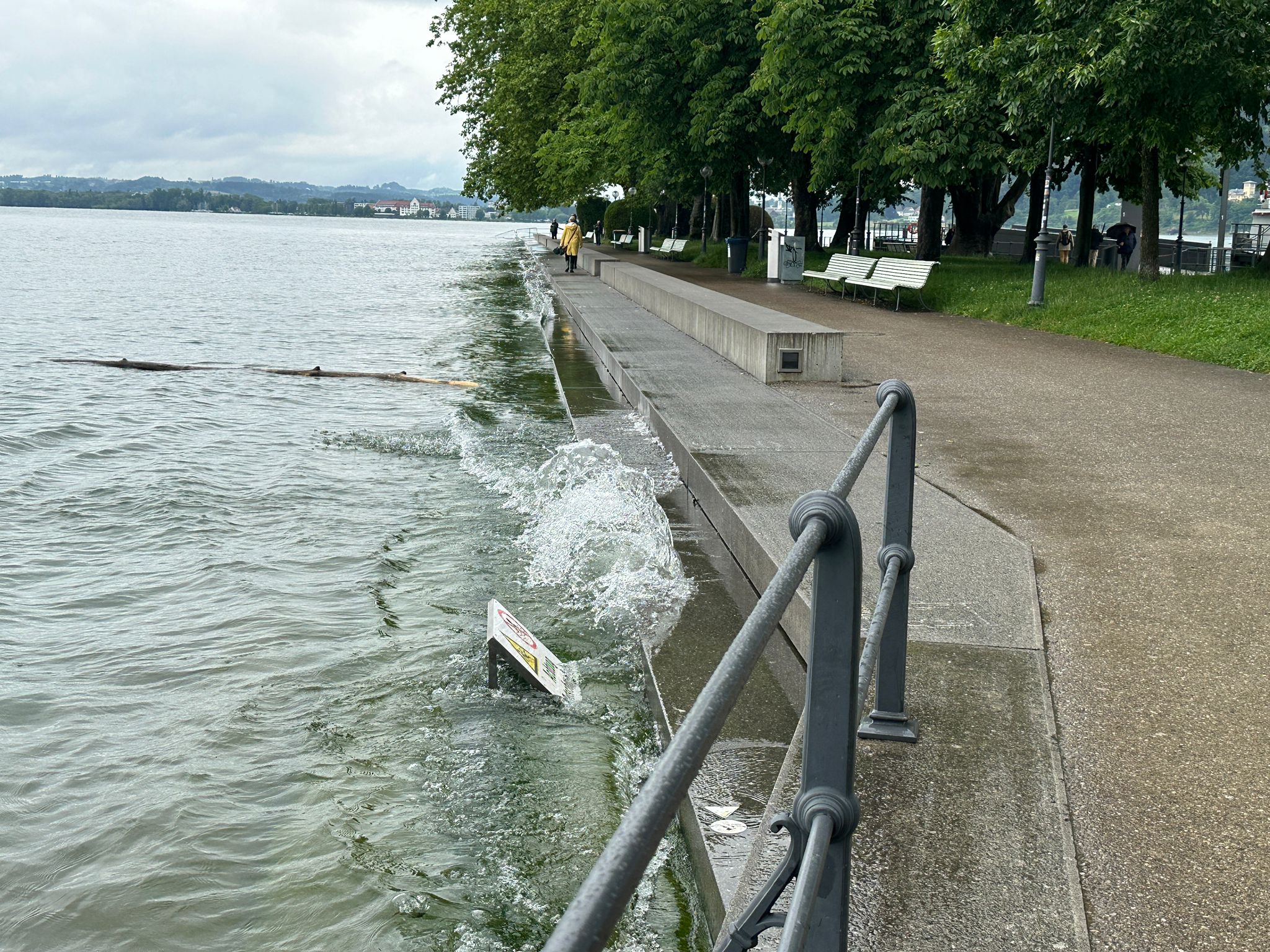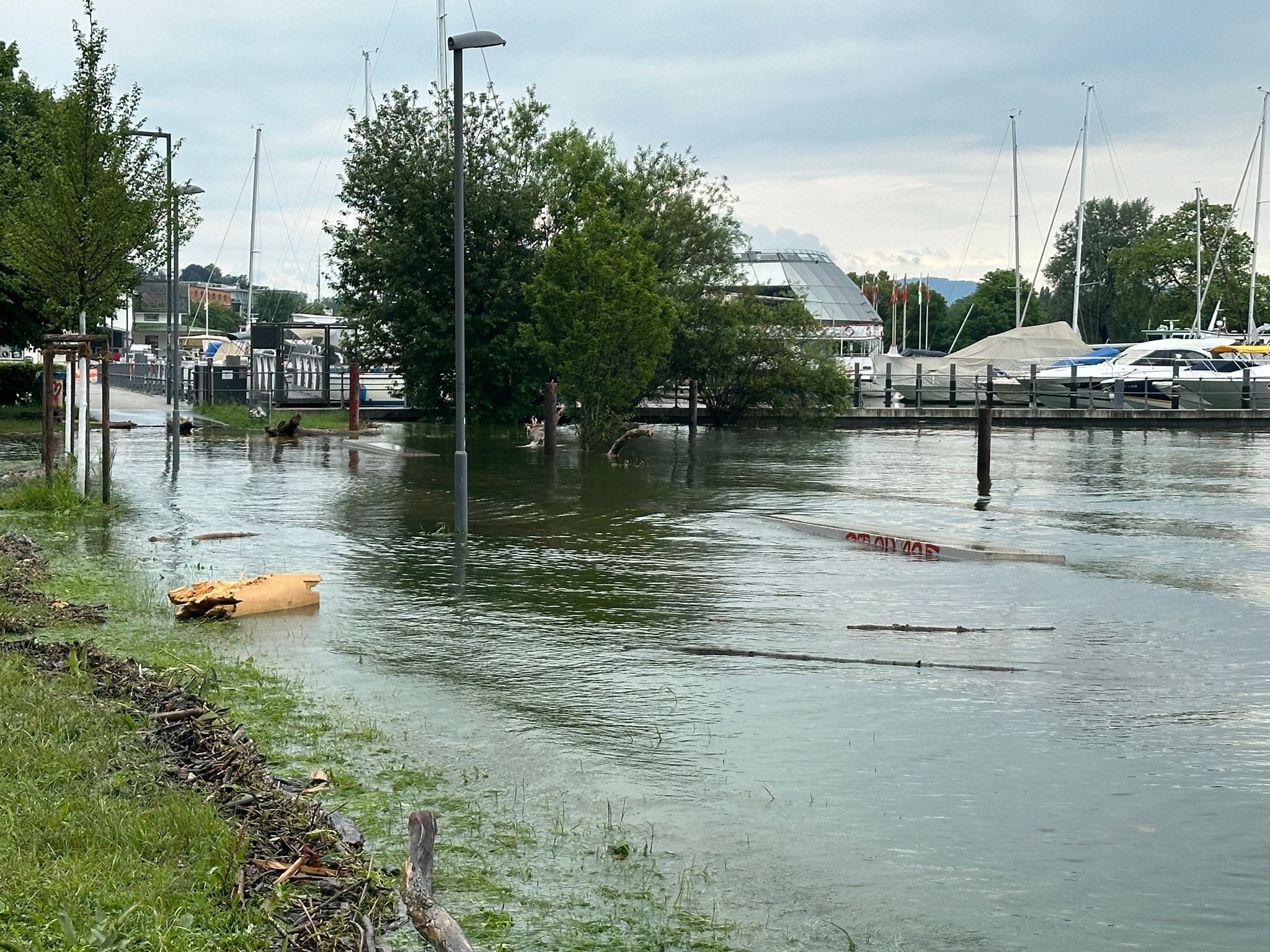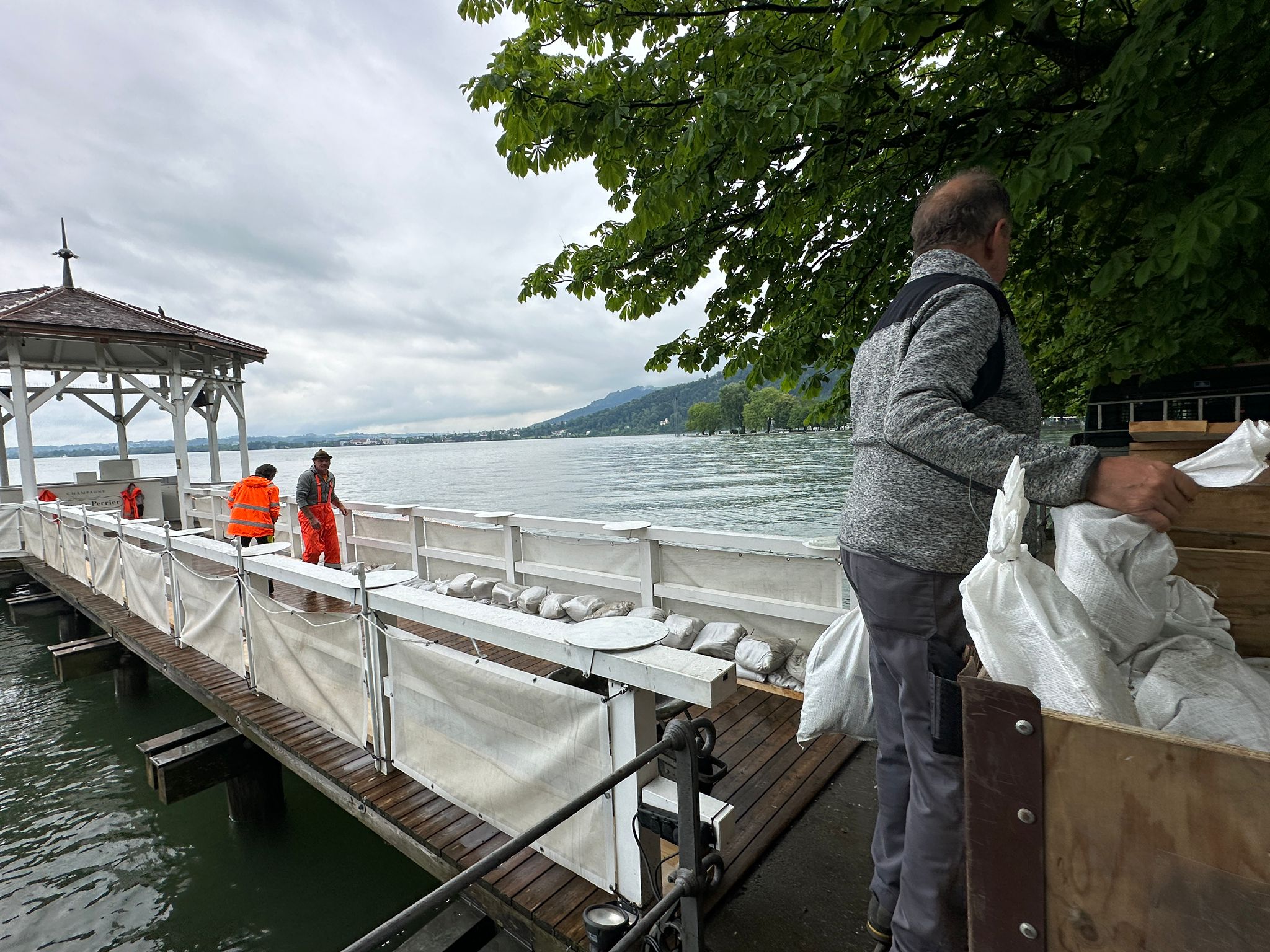 "Die Dauersiedlungsgebiete der Stadt Bregenz und der Gemeinden am Vorarlberger Bodenseeufer sind durch feste und mobile Hochwasserschutzeinrichtungen bestens geschützt. Das ist das Allerwichtigste", sagte Landeshauptmann Markus Wallner (ÖVP). Dämme, höher gelegte Uferwege und mobile Einrichtungen schützten vor Überflutungen. Pumpwerke sorgten für die Hinterlandentwässerung, indem sie Bachwasser in den See pumpen. Es bestehe kein Grund zur Sorge, die Aufmerksamkeit bleibe aber hoch, betonte Wallner.