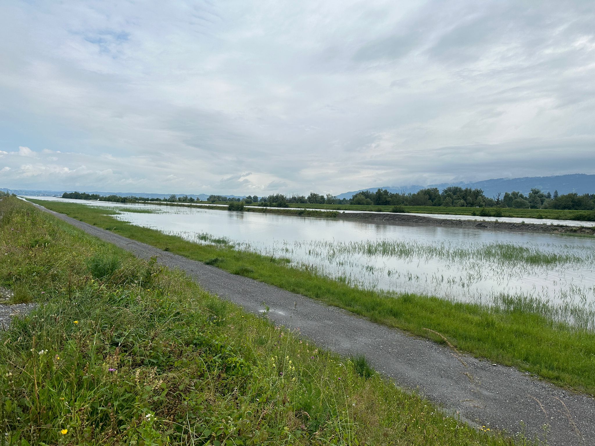 Am Rhein wurde eine Abflussspitze von rund 1.000 Kubikmeter Wasser pro Sekunde erwartet. Diese sollte am Montag erreicht werden - die Schutzdämme des Rheins sind auf 3.000 Kubikmeter ausgerichtet, das entspricht einem 100-jährlichen Hochwasserereignis. Dennoch wurden die Vorländer auf österreichischer Seite gesperrt. "Die Bevölkerung wird gebeten, sich nicht in der Nähe des Rheins aufzuhalten, um mögliche Arbeiten der Einsatzkräfte nicht zu behindern. Auch aus Gründen der persönlichen Sicherheit sollen Rheindämme, Vorland und insbesondere die Innenwuhre gemieden werden", hieß es.