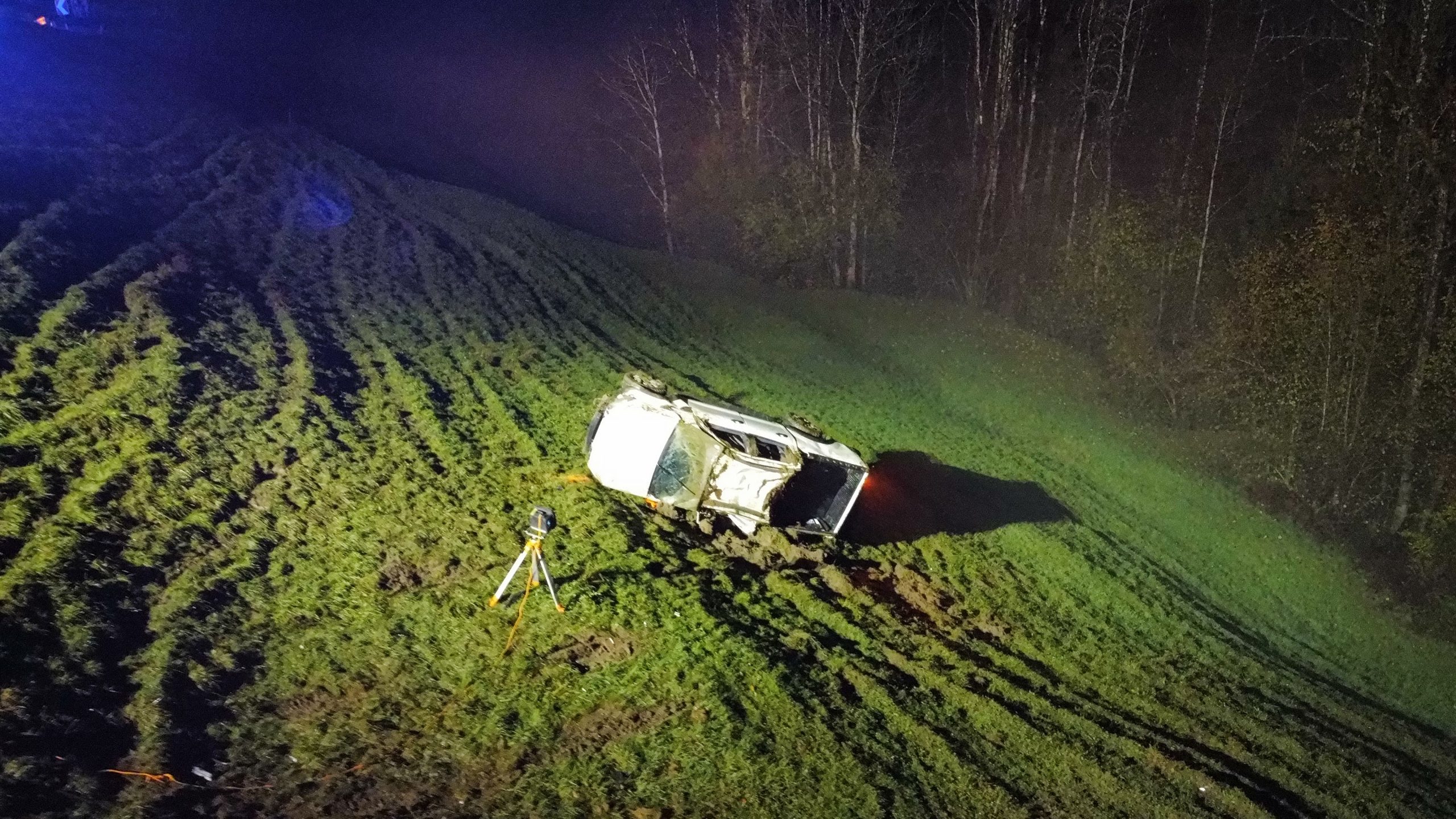 Gegen 23:20 Uhr lenkte ein 22-Jähriger seinen Pickup auf der L4 in Richtung Krumbach, als er in der Parzelle Moos die Kontrolle über das Fahrzeug verlor. Auf der abschüssigen Fahrbahn geriet der Wagen über den rechten Fahrbahnrand hinaus und kollidierte mit einem Weidezaun, einer Kilometrierungstafel und einem Begrenzungspfosten. Daraufhin überschlug sich der Pkw, kam erst nach circa 80 Metern an einem steilen Wiesenabhang zum Stillstand und lag auf der Fahrerseite.