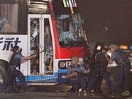 Der Fahrer des Reisebusses konnte vor dem Eingreifen der Polizei flüchten. Nachdem der Kidnapper am Abend von Beamten erschossen worden war, zeigten die Fernsehbilder, wie bei strömendem Regen Menschen aus dem Bus stiegen oder getragen wurden, etliche Rettungswagen fuhren heran. Zuvor hatte es mehrere Schusssalven gegeben, die Aufnahmen zeigten zudem Rauchschwaden im Bus – möglicherweise von einer Gaspatrone.