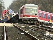 Statt des noch mit einem Tor versperrten Zufahrtsweges parallel zur Bahnstrecke hatte der Lastwagenfahrer nach Erkenntnis der Feuerwehr eine Abkürzung über die Bahngleise zu dem Werksgelände gesucht. Dabei fuhr er sich fest. Der 53-Jährige stieg aus, um Hilfe zu holen, er blieb unverletzt. Der Tempo 80 fahrende Zug fuhr trotz einer Notbremsung frontal auf den stehenden Lastwagen auf und schleifte ihn 50 Meter weit mit. 30 Tonnen Weizen, die der Laster geladen hatte, verteilten sich auf den erheblich beschädigten Gleisen.
