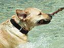 – Hilfreiche Abkühlung: Gehört Ihr Hund zu denjenigen, die nicht ins Wasser gehen? Dann schützen Sie ihn vor der Sommerhitze, indem Sie ihm immer mal wieder ein feuchtes Tuch zur Abkühlung auflegen oder ihm ein feuchtes T-Shirt überziehen. Denn Schweißdrüsen, die seinen Wärmehaushalt regulieren, hat das Tier nicht.