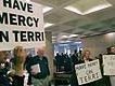 Vor der Klinik haben sich Mitglieder konservativer Gruppen versammelt, die für eine Wiederaufnahme der künstlichen Ernährung demonstrieren. 13 Personen wurden bei dem Versuch festgenommen, der Koma-Patientin Wasser zu bringen.
