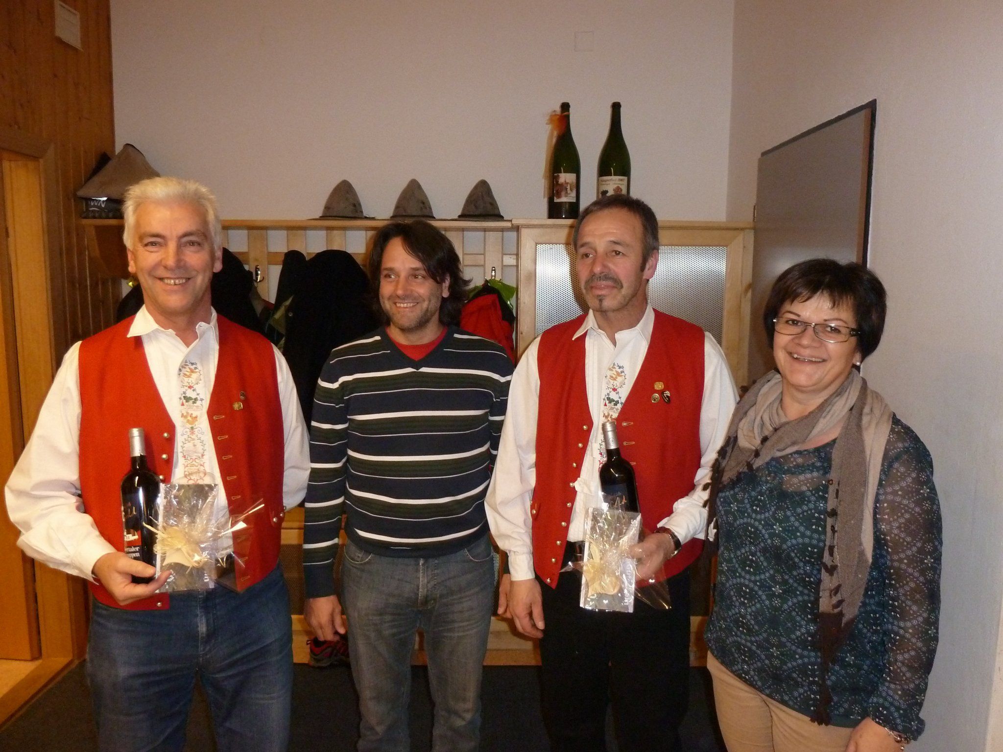 Netzer Hans, seit 35 Jahren bei der Trachtengruppe und Saler Franz, 30 Jahre Musikant bei der Trachtengruppe wurden Glückwünsche und lobende Worte,von Bitschnau Ulrike, Referentin des Landestrachtenverbandes und von Bürgermeister Zuderell Thomas überbracht.