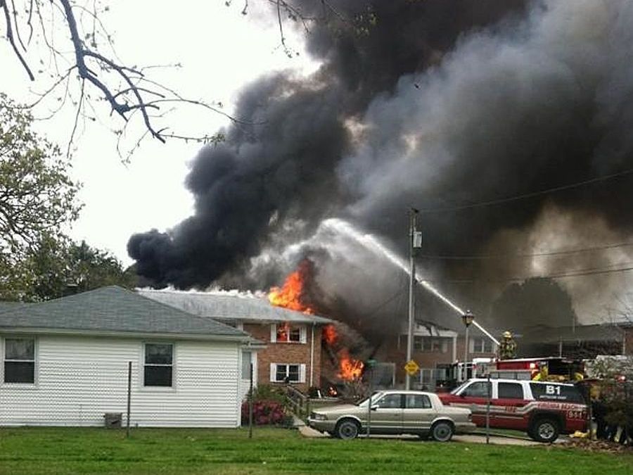 Die zweisitzige Marine-Flugzeug vom Typ F/A-18D war kurz nach dem Start auf dem nahe gelegenen Militärflugplatz Oceana in den Hof eines Mietwohnungskomplexes in Virginia Beach gekracht. Wie Riley schilderte, fingen fünf Gebäude Feuer. Sie wurden teilweise schwer beschädigt. Zwei stürzten ein. Fernsehbilder zeigten brennende Dachstühle, dicke schwarze Rauchschwaden und verstreute Trümmerteile.