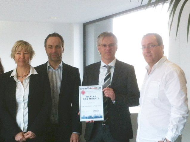 Wolfgang Seeberger von laendleimmo.at durfte dem am besten bewerteten Immobilien Makler-Team eine Urkunde überreichen und zusätzlich zum gewonnenen Top-Makler Inserat gratulieren. Die Freude im Team der Hypo Makler war groß. Zu Recht, denn durch Engagement und Fachkompetenz konnte das Team bei den Immobilien-Interessenten punkten und die Bewertung für sich entscheiden – eine stolze Leistung!