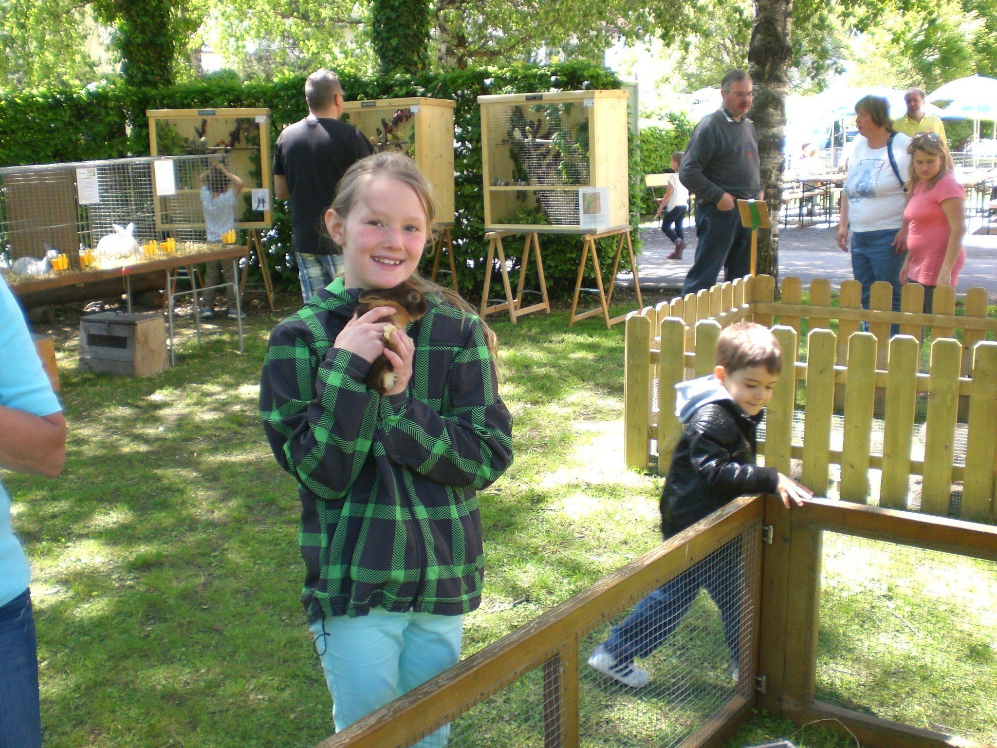 Aufgrund des wunderbaren Wetters und des nebenan stattfindenden Flohmarkts nahmen viele interessierte Leute die Gelegenheit wahr, eine große Vielfalt an Kaninchen, Vögel und Geflügel zu bewundern. Besonders die kleinen Gäste hatten viel Freude damit, die Tiere nicht nur anzusehen, sondern sie durften sie anfassen und streicheln und wurden dabei von den jeweiligen Züchtern der Tiere betreut. Währenddessen konnten die Eltern im gemütlichen Garten des Vereinsheimes die Grillspezialitäten und selbstgemachten Kuchen vom Küchenteam Franz Holl genießen.