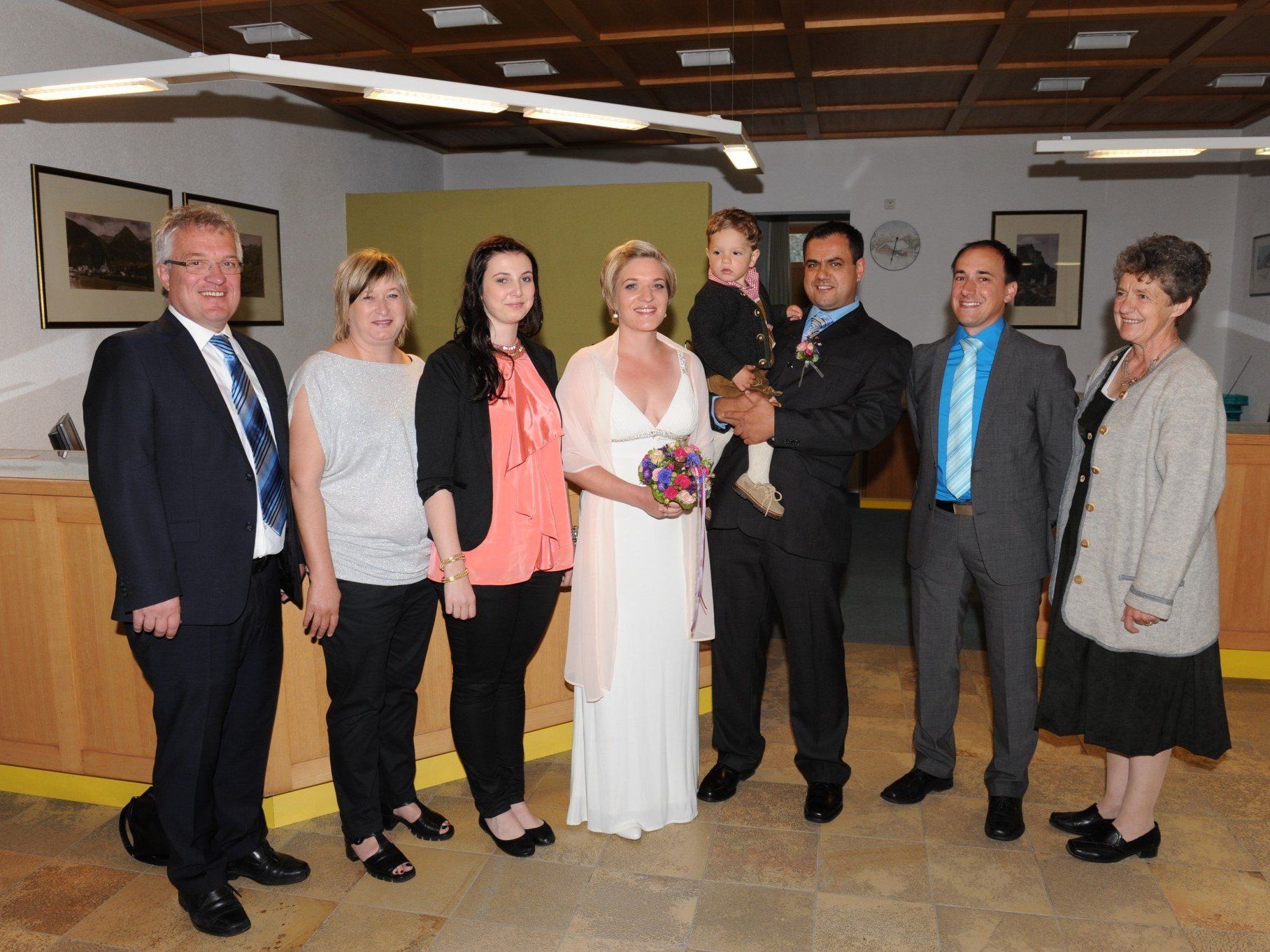 Als Trauzeugen stellten sich Sarah Weber und Mathias Peter zur Verfügung. Nach der feierlichen Zeremonie gratulierte die Hochzeitsgesellschaft herzlich, allen voran die Eltern Margit und Manfred Baldauf sowie Marianne Moosbrugger. Auch für den gemeinsamen Sohnemann Felix wurde der Tag zu einem Fest. Nach einem Sektumtrunk gestaltet von Freunden ging es dann weiter ins “Wirtshaus zum Gämsle” wo ein tolles Fest gefeiert wurde. Denise und Richard lernten sich vor fünfeinhalb Jahren in Warth kennen und sind seit viereinhalb Jahren ein Paar. In Schoppernau haben Sie ihr gemeinsames Heim und freuen sich schon sehr auf die Flitterwochen.
