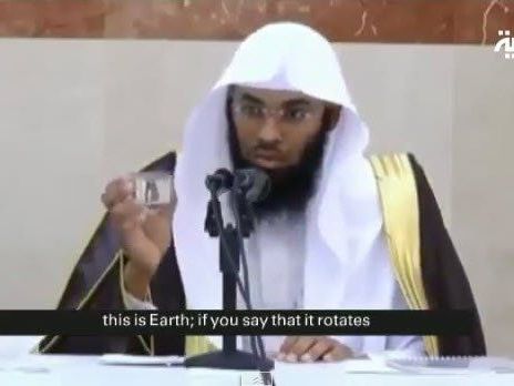 “Wenn wir nach China fliegen”, sagt Bandar al-Khaibari, “und die Erde würde sich drehen. Würde ihm dann nicht China entgegenkommen, wenn das Flugzeug in der Luft anhält?” Und weiter: “Wenn die Erde in die andere Richtung rotiert, dann wird das Flugzeug China nicht erreichen können, weil China sich mit dem Flugzeug mitdreht.”