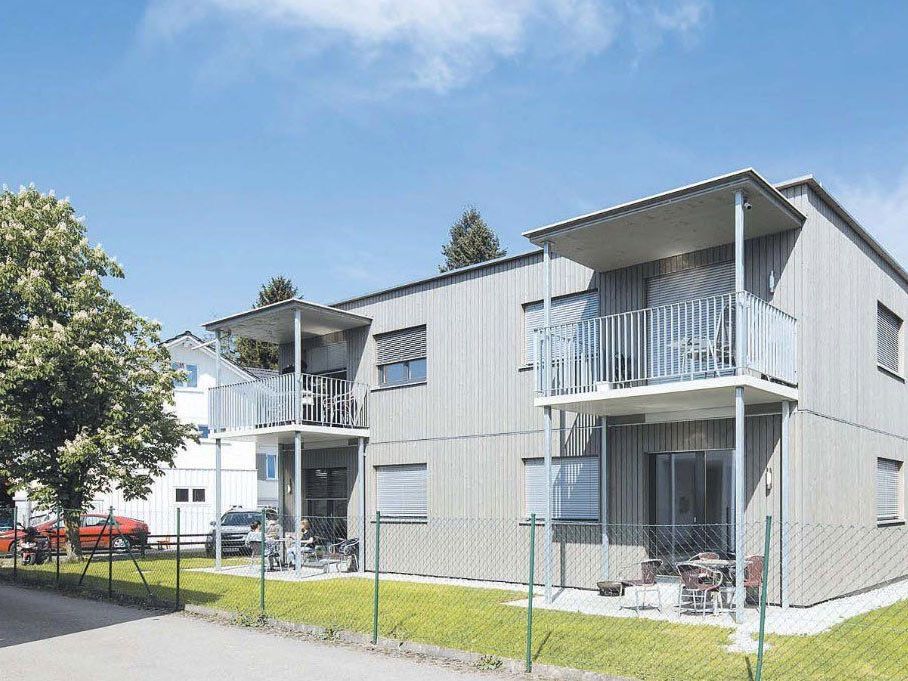 Anforderungen, die eindeutig für ein Holzhaus sprachen. Die gesamte Bauzeit betrug ganze acht Wochen, die zehn vorgefertigten hölzernen Raumzellen wurden in zwei Tagen auf zwei Etagen auf den betonierten Sockel montiert. Die theoretisch ebenso schnell wieder zerlegt und an einem anderen Ort neu aufgebaut werden könnten. Die zwei kleineren, je rund 30 m großen Wohnungen bestehen aus zwei Modulen, die rund 45 m großen aus drei. Sie sind in allen vier Einheiten baugleich und identisch ausgestattet. Eines dieser Module besteht aus dem Bad bzw. Ess-/Küchenbereich, das zweite aus dem Wohn- und Schlafbereich. Letzterer ist in den zwei größeren, für zwei Bewohner ausgelegten Einheiten auf zwei Module aufgeteilt.