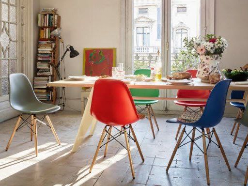 Das Konzept des heute legendären Plastikstuhls entstand bereits 1948 anlässlich des Wettbewerbs „Low Cost Furniture Design“ des Museum of Modern Art. Der Einsatz von organisch geformtem Fiberglas war damals eine Revolution im Möbelbau. Und führte 1951 zum ersten seriell hergestellten Plastikstuhl der Welt. Die daraus von Charles & Ray Eames entwickelte Produktfamilie, die Eames Plastic Group, ist bis heute Vorbild für unzählige Entwürfe von modernen Stühlen. Ein weiterer Grund für seine Erfolgsgeschichte sind die unzähligen Variationsmöglichkeiten. Neben der Sitzschale mit und ohn Armlehne sind es vorallem die Untergestelle in unterschiedlichen Materialien, die den Stuhl zu einem Allrounder machen. Am Esstisch und auch im Garten.