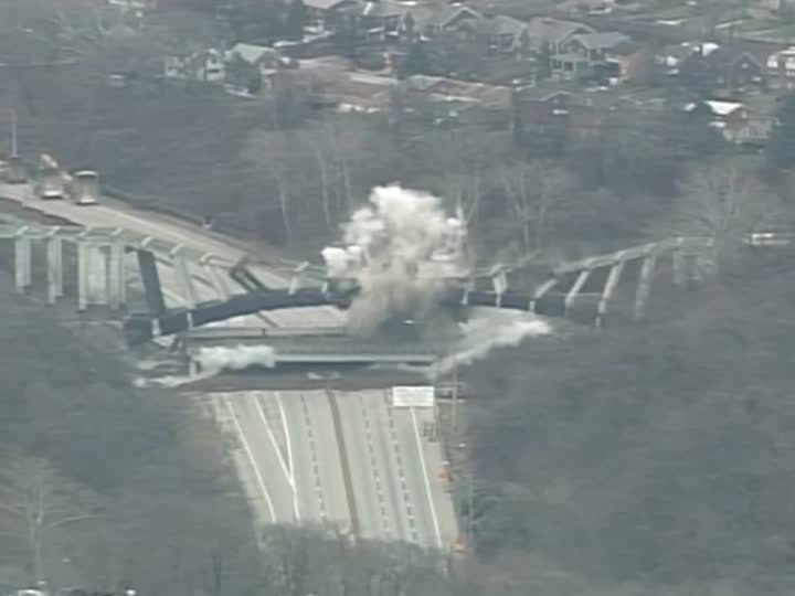 94 Jahre lang hat die Greenfield-Brücke in Pittsburgh als Übergang über eine Schnellstraße gedient, am Montag musste sie einer Nachfolgerin weichen. Und das tat sie, in nur wenigen Sekunden. Für das kontrollierte Abwracken wurden Hunderte Löcher in den Brückenbogen gebohrt und mit reichlich Sprengstoff gefüllt. Eine neue Brücke soll voraussichtlich in rund zwei Jahren fertig sein.