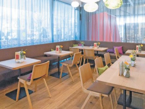 Auch dieser Stuhl punktet mit bestem Sitzkomfort. Die ergonomisch geformte breite Rückenlehne stützt die Wirbelsäule, die Hinterbeine sind unter Dampf gebogen und geben so höchste Elastizität und Bruchsicherheit. Das 4-Sterne-Hotel Schwärzler in Bregenz stattete den Seminarraum und das Restaurant mit Tischen und LH09-Stühlen von Längle Hagspiel aus.