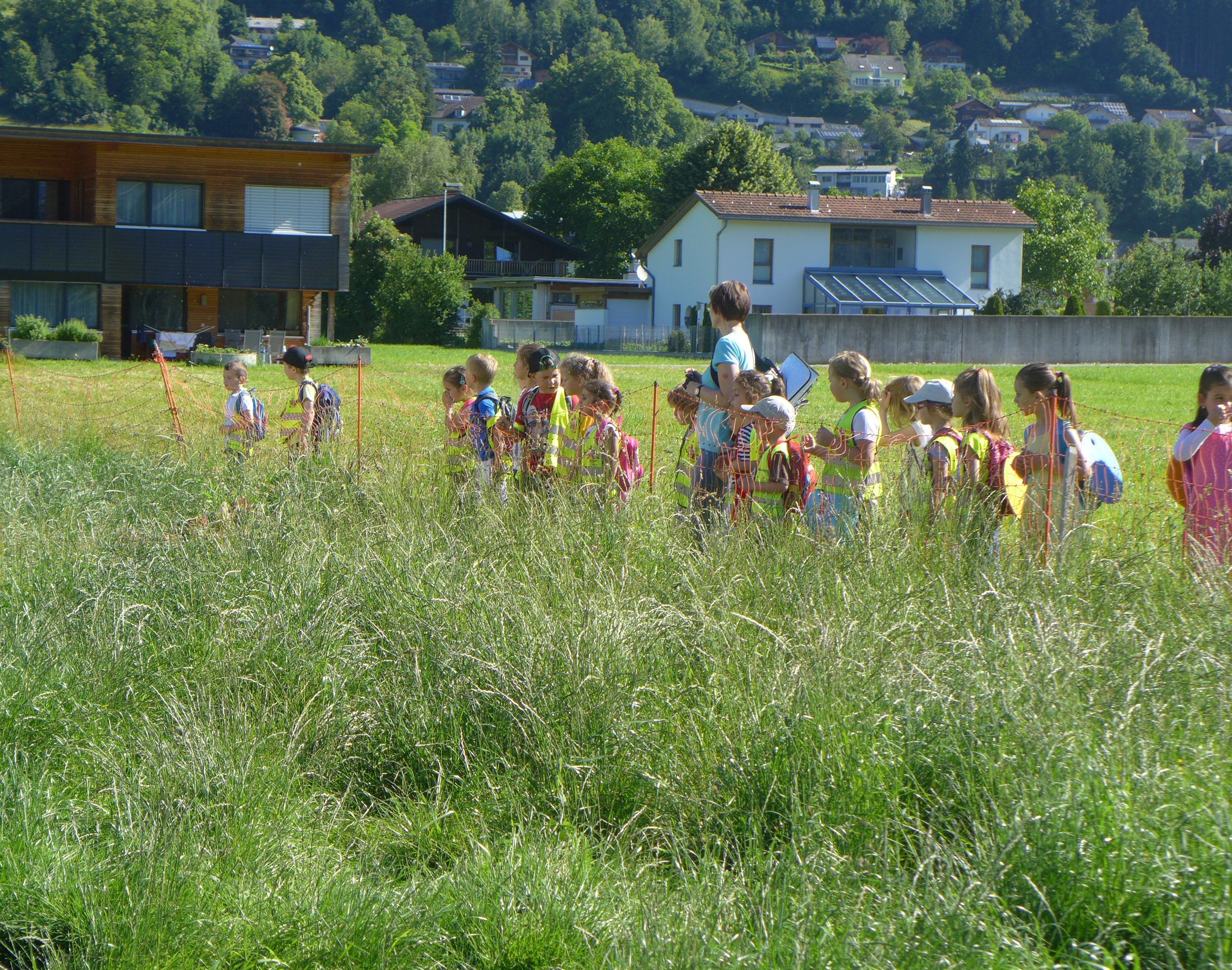 Gemeinsam machten sich alle Kinder mit ihren Kindergartenpädagoginnen auf den Weg nach Thüringen, wo wir viele Hühner beim Picken, Scharren und Gackern beobachteten. Man musste schon ganz genau hinsehen, um die Hühner im hohen Gras zu entdecken.