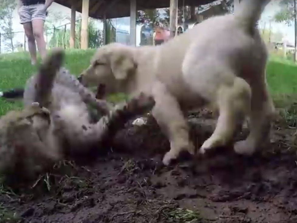 Baby-Gepard Emmett ist von Natur aus ein scheues Kerlchen. Damit er etwas entspannter wird, kümmert sich sein Kumpel Cullen, ein Labrador-Welpe um ihn.