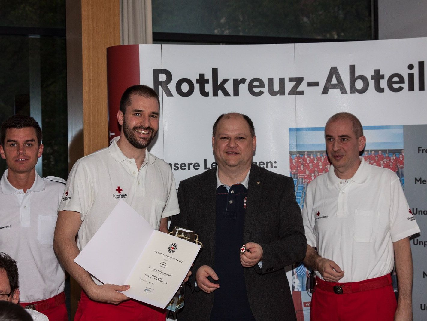 Es wurden auch heuer wieder einige MitarbeiterInnen für besondere Verdienste und langjährige Mitarbeit ausgezeichnet. Die Verdienstmedaille in Bronze erhielten Josef Bachmeier, Lukas Burtscher und David Sohm. Die Fahrtenspange in Bronze (1000 Ausfahrten) erhielten Manuel Galler, Kadir Kurt, Ivonne Loacker, Christoph Pradler und OA Dr. Bernhard Schwärzler. Die Fahrtenspange in Silber (2500 Ausfahrten) erhielten Immanuel Nachbaur und Elfriede Schedler. Die Fahrtenspange in Gold (5000 Ausfahrten) erhielt Thomas Maierhofer. Für 10 jährige Zugehörigkeit wurden Ing. Peter Freydl, Immanuel Nachbaur und Dr. Simon Mathis ausgezeichnet. Für 20 jährige Zugehörigkeit wurden Karin Krainz und OA Dr. Bernhard Schwärzler geehrt und für 40 jährige Tätigkeit wurden Anton Amann und Annemarie Dona ausgezeichnet.