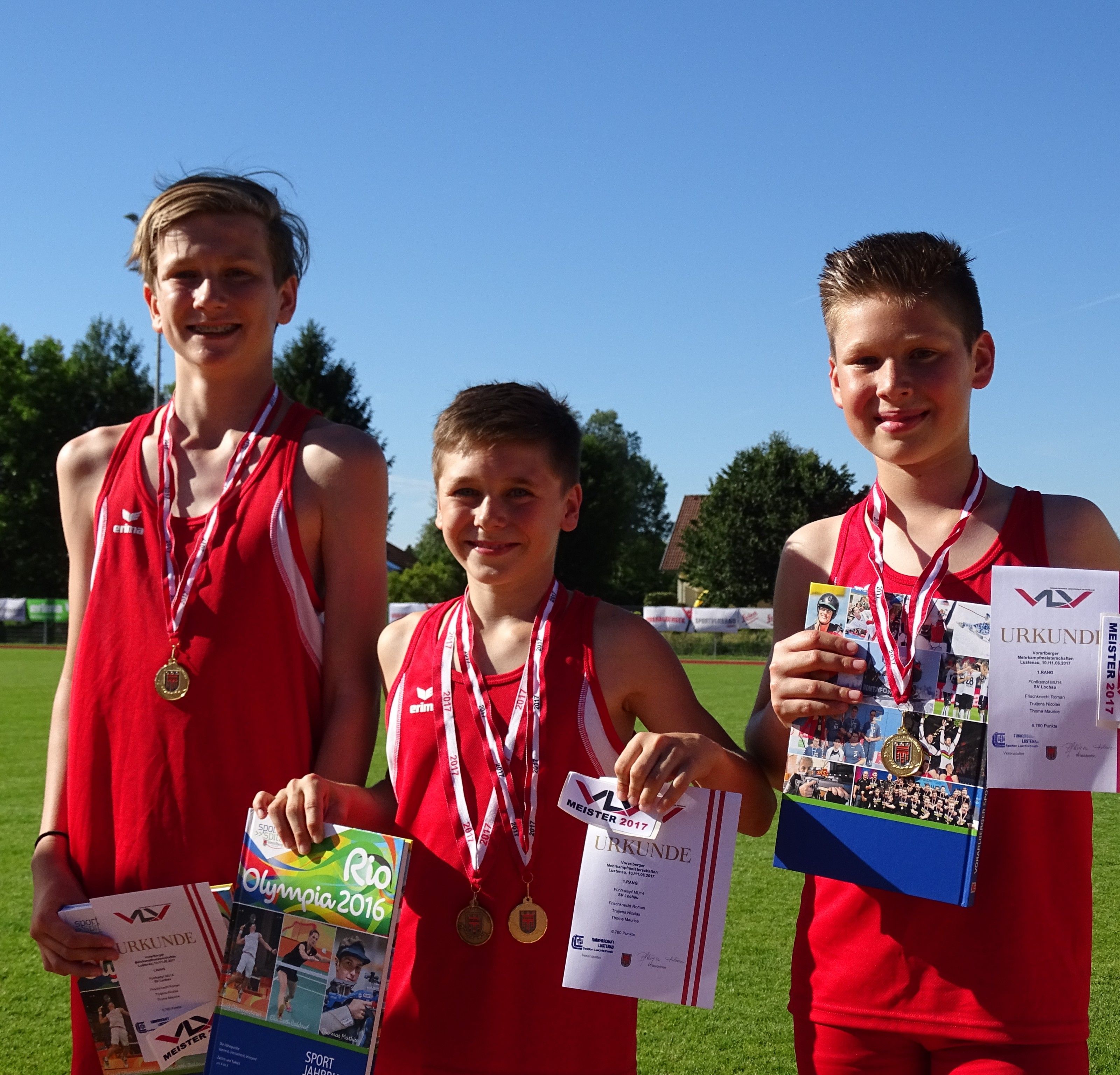 Beim Mehrkampfmeeting in Lustenau erreichte unsere U14 Mannschaft mit Patrik Cerny, Alexander Maringgele und Simon Eberle den 1.Platz und wurden somit Vorarlberger Meister in der Mannschaftswertung. Alexander Maringgele erreichte in der Einzelwertung den dritten Platz.