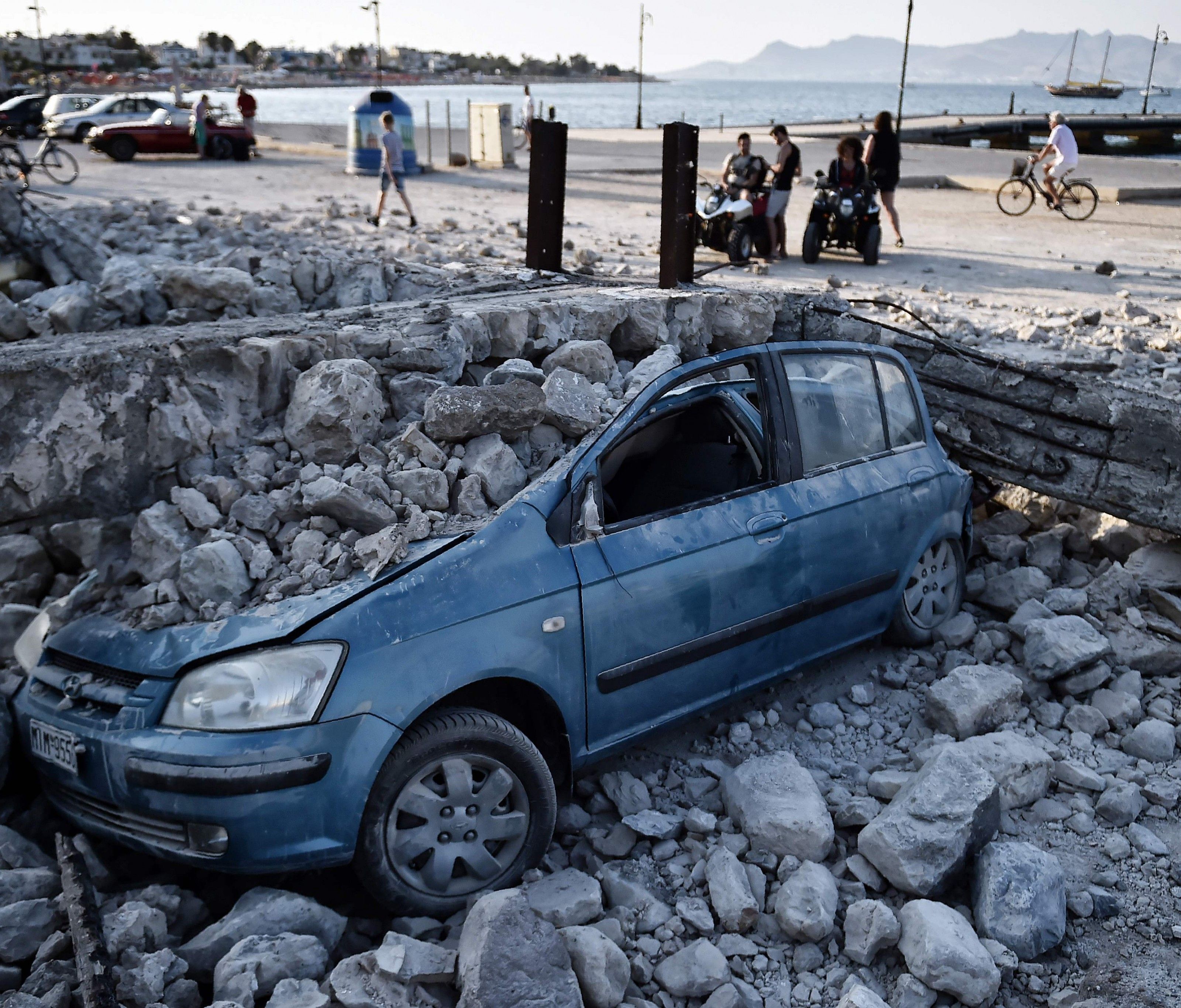 Die schwersten Schäden gibt es in der Altstadt von Kos. Dort waren am frühen Freitagmorgen, als sich das Hauptbeben ereignete, zwei Touristen – ein Schwede und ein Türke – durch herabfallende Steine ums Leben gekommen. Eine Kirche und zwei Moscheen sowie mehrere Bars des Amüsierviertels in der Altstadt wurden schwer beschädigt. Ein dreistöckiges Wohnhaus muss abgerissen werden. Dem Hauptbeben folgten Dutzende kleinere Nachbeben mit Stärken zwischen 2 und 4,6. Die Seismologen erwarten eine lange Serie mit kleineren Erdstößen in den nächsten Tagen und Wochen.