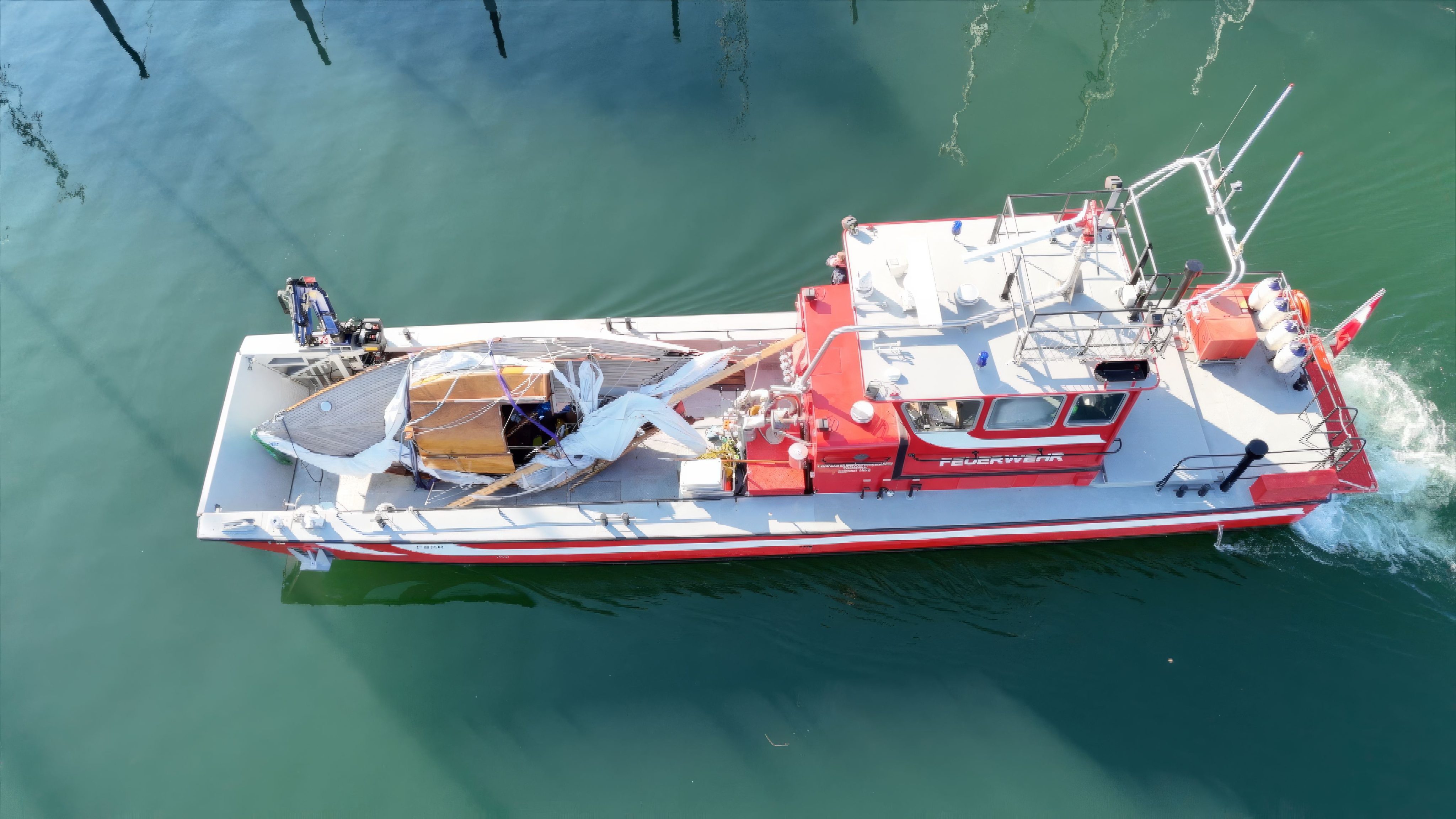 Das stark beschädigte Segelboot wurde beim Salzmann-Hafen am Rohrspitz von der Feuerwehr geborgen und soll nun für weitere Untersuchungen der Staatsanwaltschaft zur Verfügung gestellt werden.
