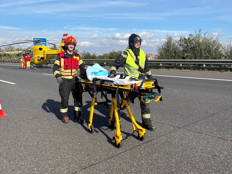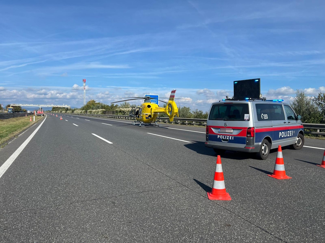 The Southern Motorway had to be completely closed for the landing of the emergency medical helicopter. After emergency medical treatment, the driver was flown to the hospital by helicopter. Initially, there was no information available about the man's health condition.