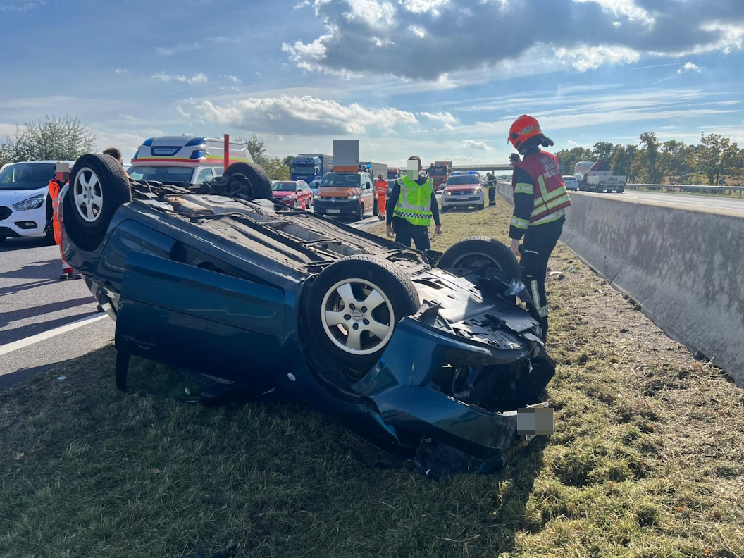A car driver lost control of his vehicle right in front of ASFINAG employees who were busy with mowing work, veered off the road, and overturned. The car came to rest on its roof in the central reservation of the A2.
